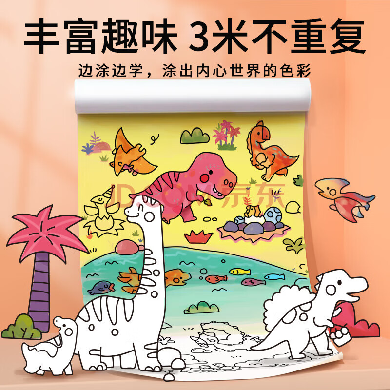 商品相册:美乐童年儿童涂鸦涂色画卷绘画卷纸不脏墙随心贴幼儿园绘画玩具恐龙奇遇记第