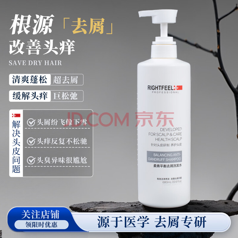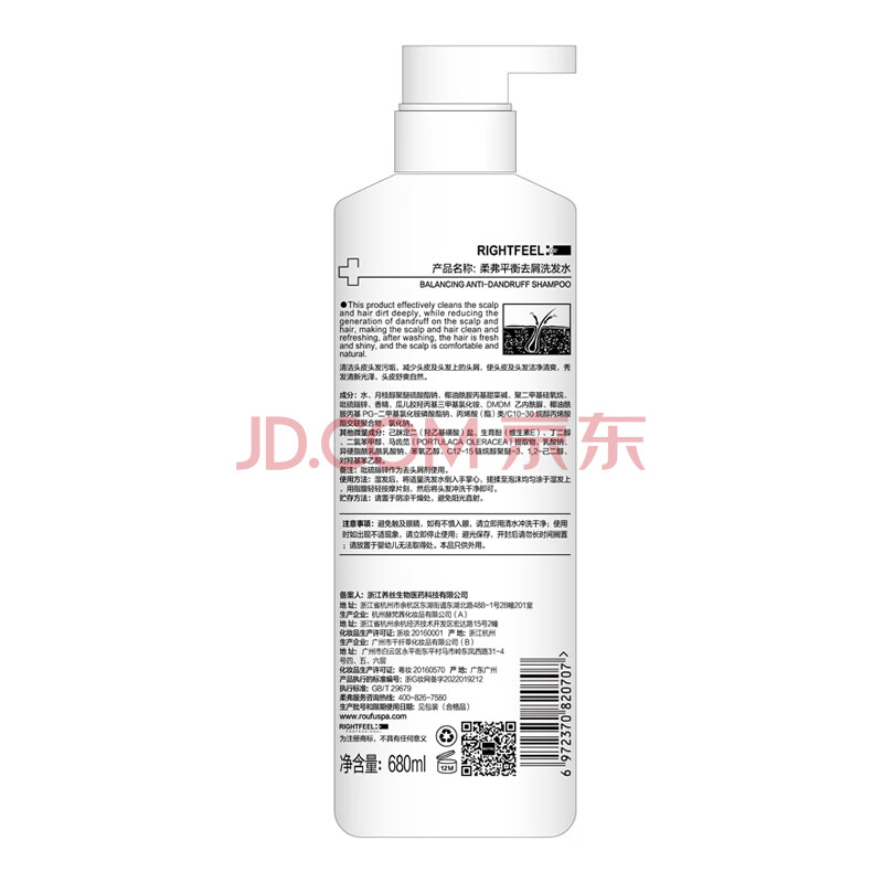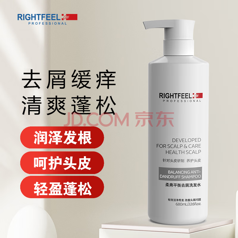 商品相册:柔弗(RIGHTFEEL)平衡去屑洗发水680ml祛屑缓痒清爽蓬松持久留香清香型洗发露第