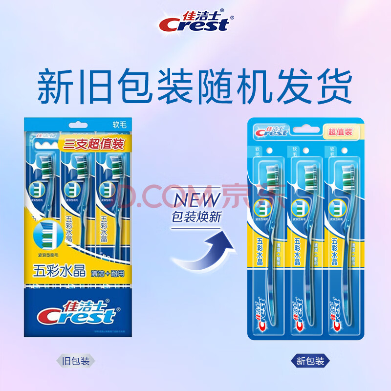 商品相册:佳洁士五彩水晶软毛护龈洁净牙刷成人柔韧护龈3支装新旧包装颜色随机发第