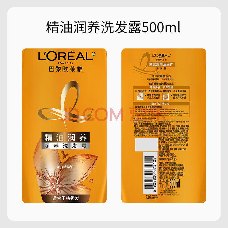 商品相册:欧莱雅精油润养洗发水柔顺顺滑滋润头发洗发露洗护套装500ml*3第