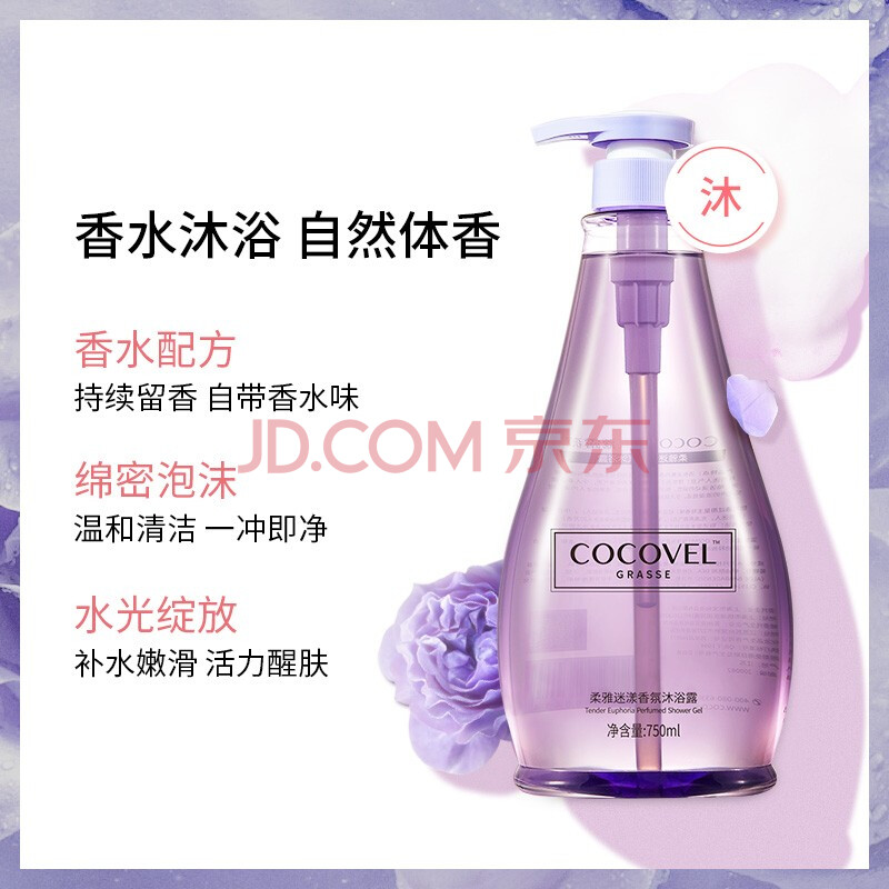 商品相册:COCOVEL蔻露薇 柔雅迷漾洗沐套装香水香氛(洗发水750ml+沐浴露750ml)第