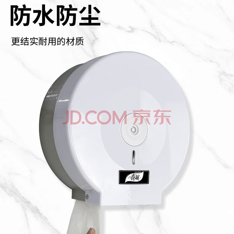 商品相册:春风卫生间纸巾盒大卷纸盒(白色)厕所纸巾架商用免打孔壁挂式大盘纸盒第1张/共3
