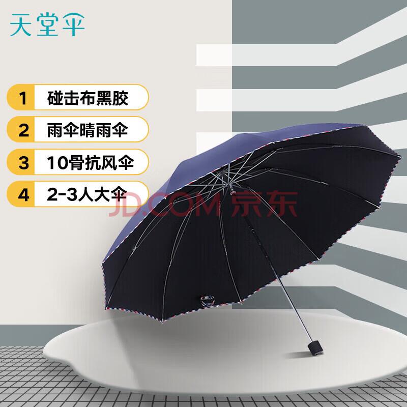 商品相册:天堂双人晴雨伞三折遮阳伞10骨加大加固抗风防晒太阳伞 3311升级藏青第