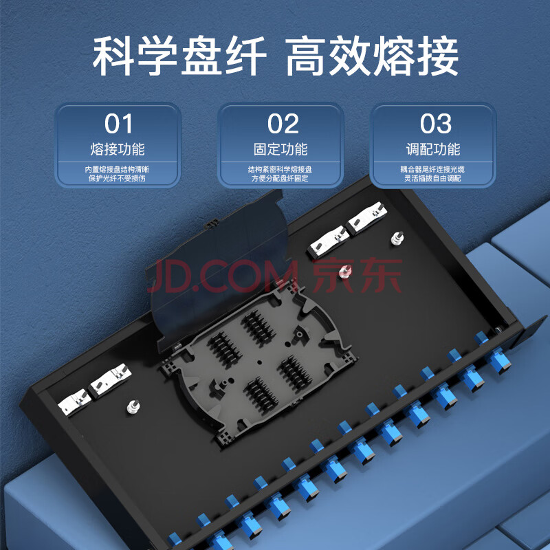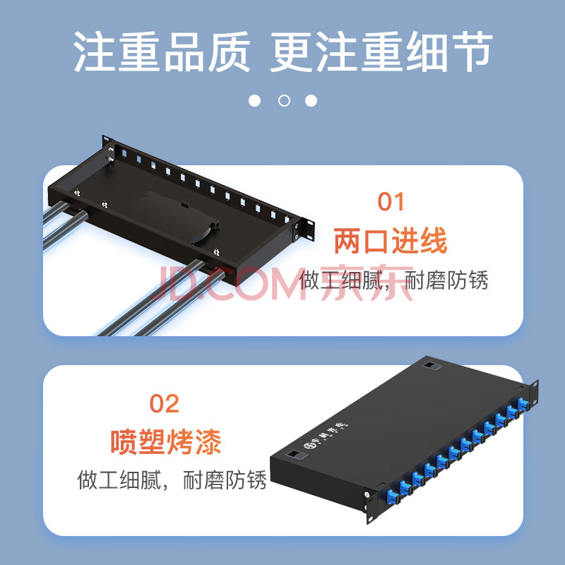 商品相册:中科光电 光纤终端盒12口 12芯光纤配线架 光缆接续盒接线熔纤盒SC单模满配尾纤法兰 机架式ZK-GXH-12SC-SM第