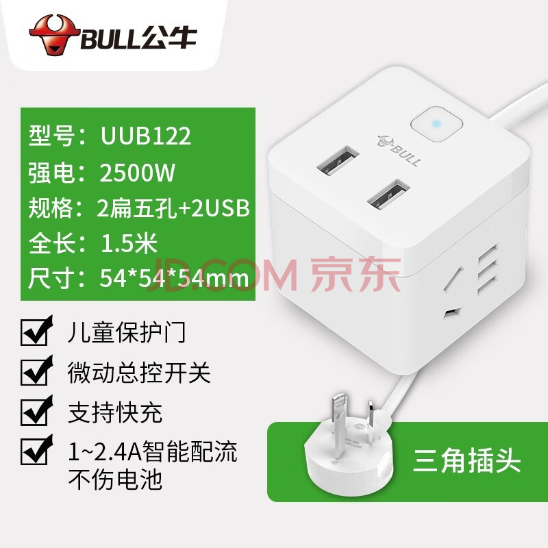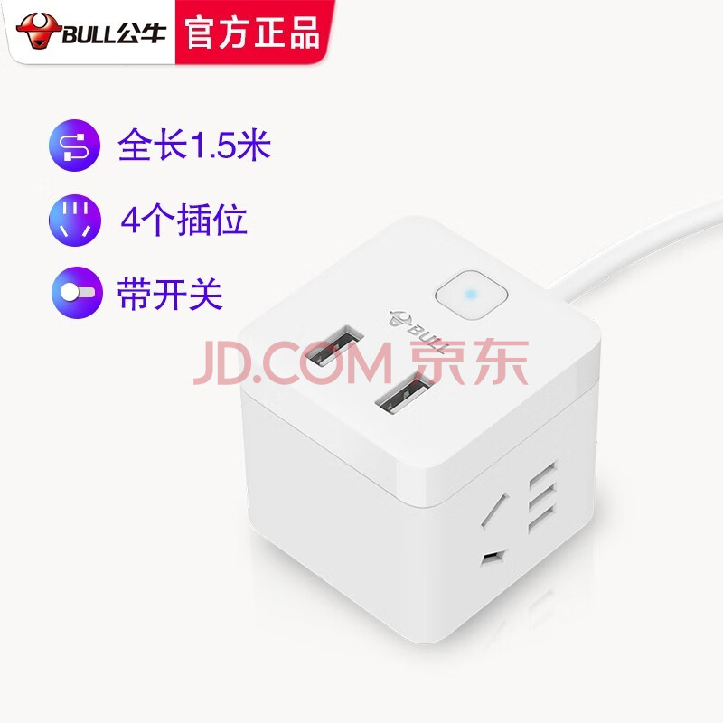 商品相册:公牛(BULL)GN-UUB122 小魔方usb1.5米2个USB接口+2插孔 创意多功能智能无线转换器手机充电小排插多孔第