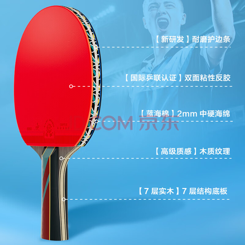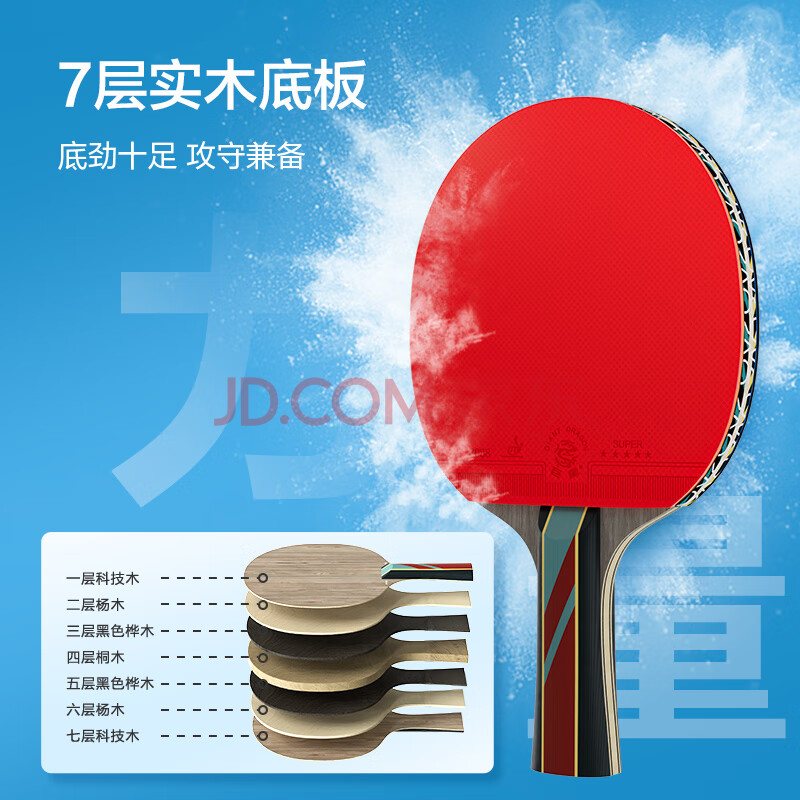 商品相册:京东京造 马啸三星乒乓球拍双拍2只装横直对拍训练套装双面反胶3星 横直板第
