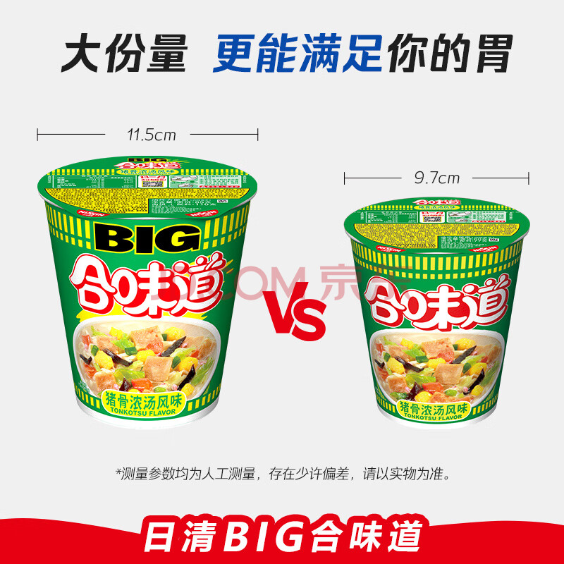 商品相册:日清方便面 BIG合味道 猪骨浓汤风味110g*3杯装 速食早餐面【大杯】第