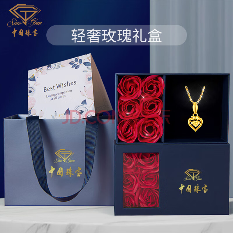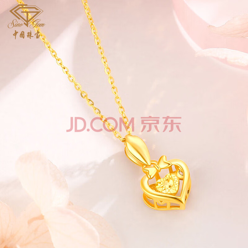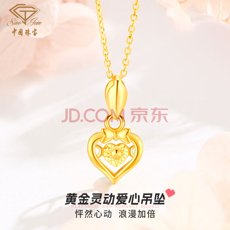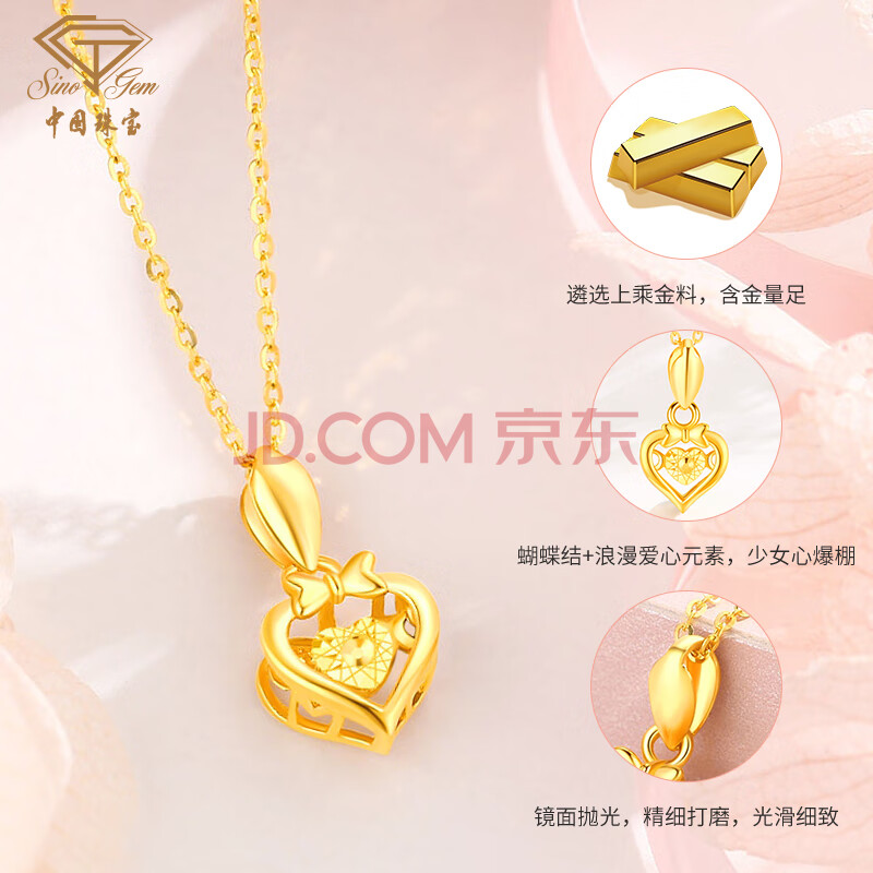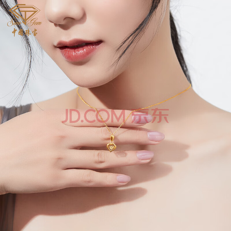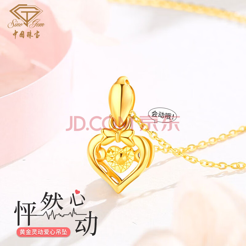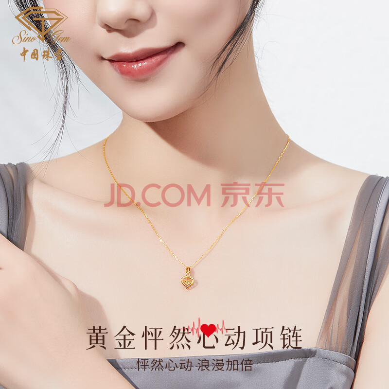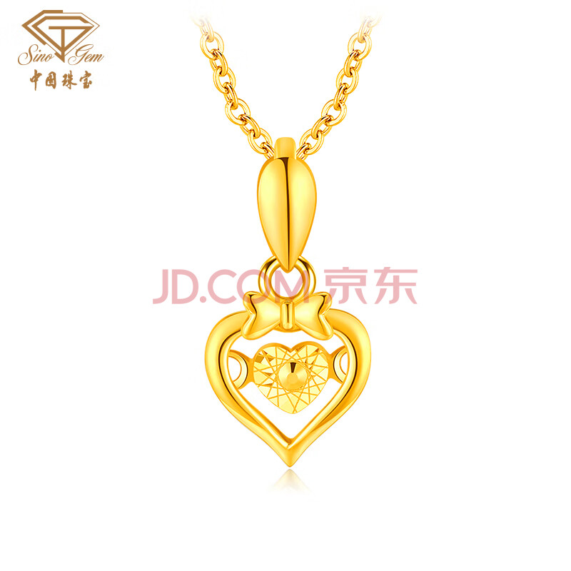 商品相册:中国珠宝生日礼物送女友黄金项链女999足金怦然心动爱心锁骨链第