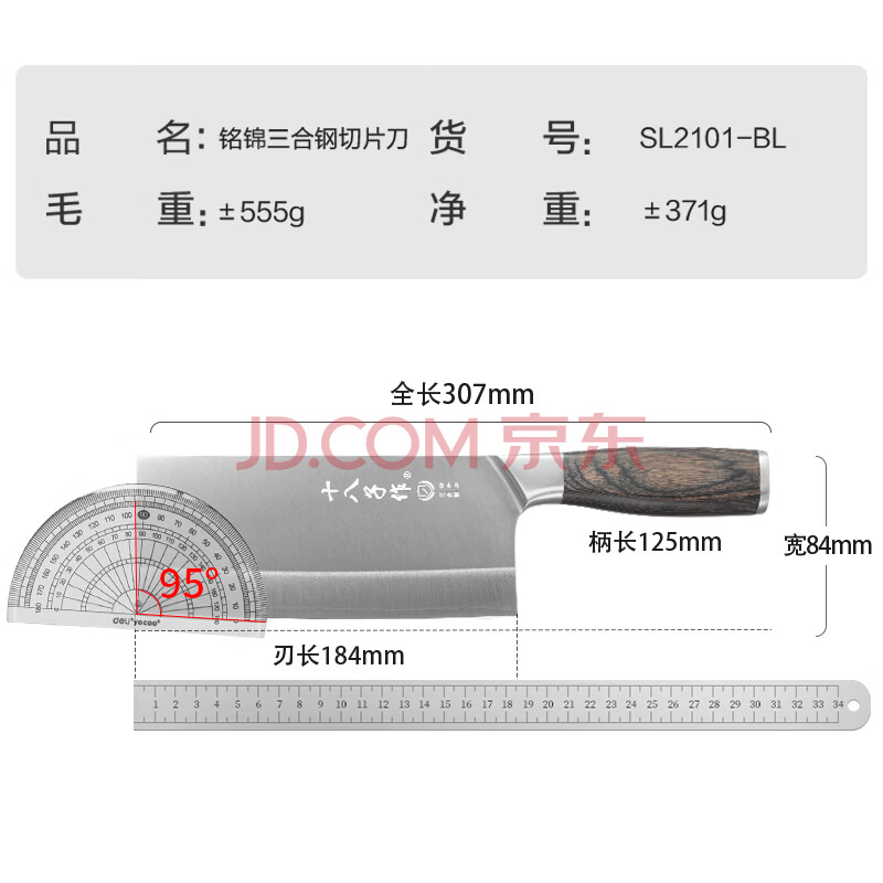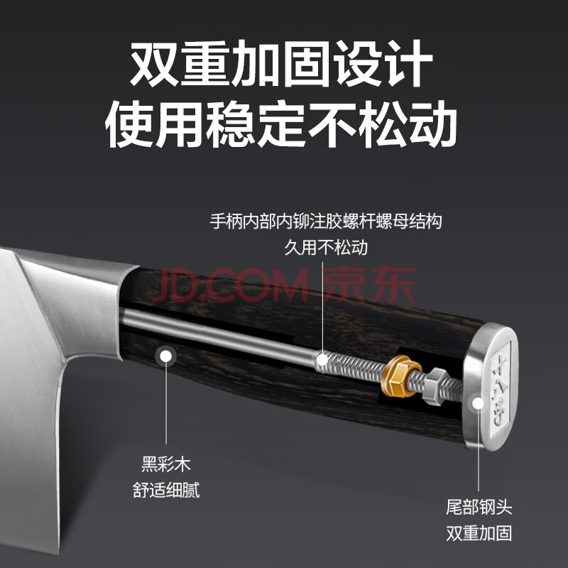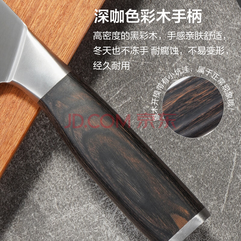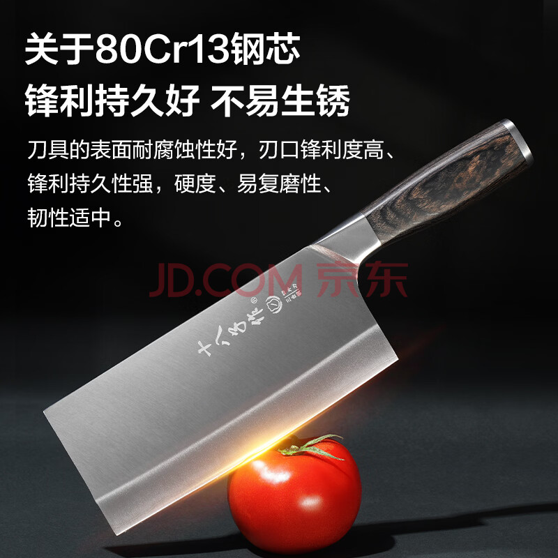 商品相册:十八子作复合钢家用菜刀 紫檀木柄刀具铭锦切片刀SL2101-BL【精美礼盒装】第