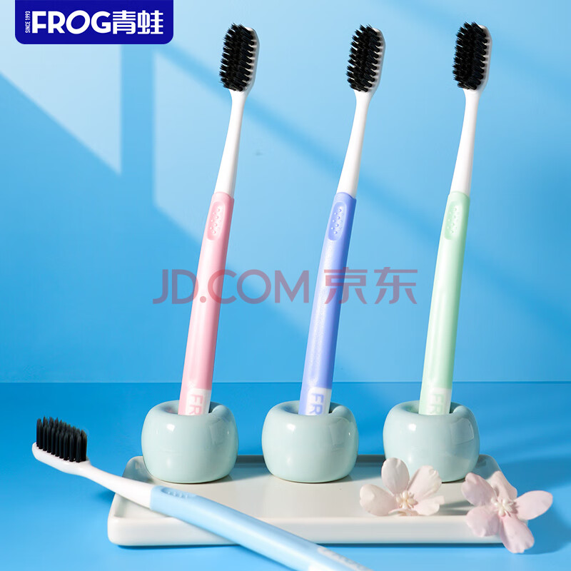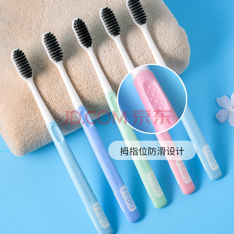 商品相册:青蛙(FROG)套装系列炭丝成人牙刷5支装 细纤软毛炭黑刷丝家庭装第