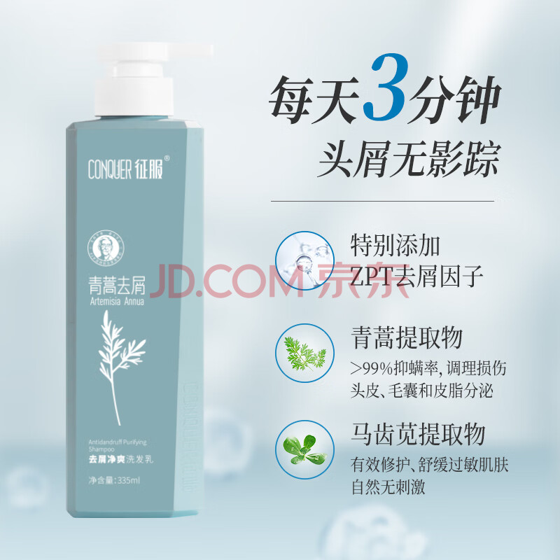 商品相册:征服青蒿去屑止痒洗发水335ml 除螨去油蓬松柔顺去屑洗发露正品旗舰店第