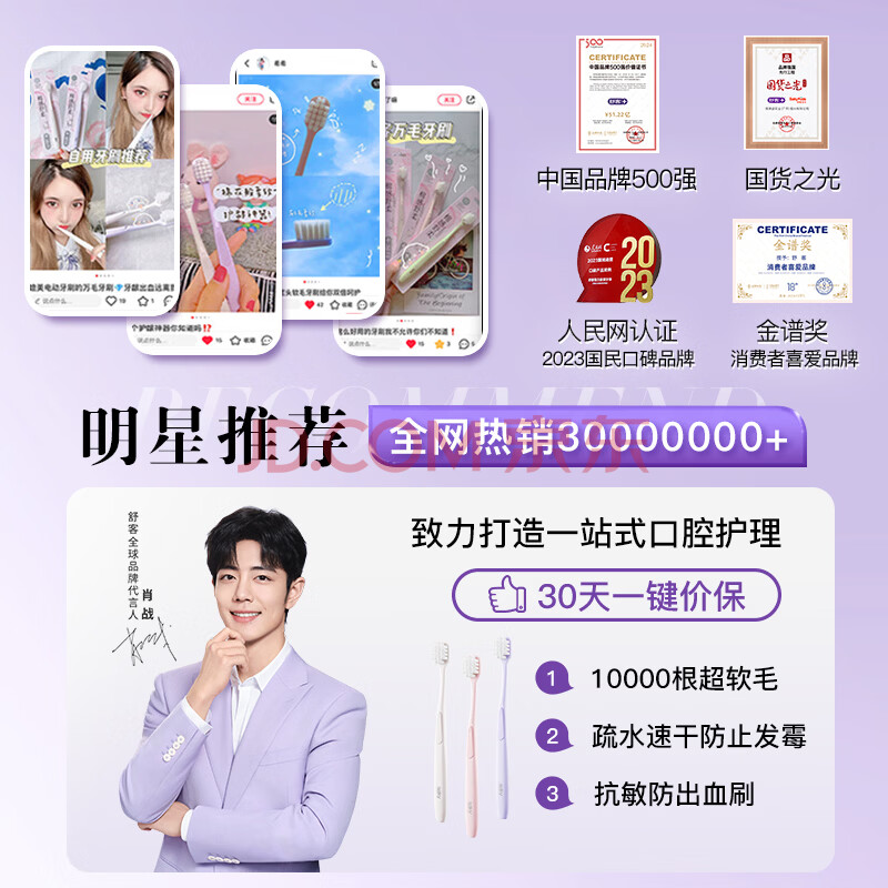 商品相册:舒客肖战同款万毛护龈成人女士牙刷2支装超细软毛家用牙刷新老随机第