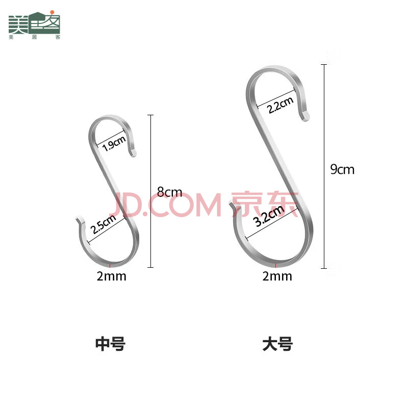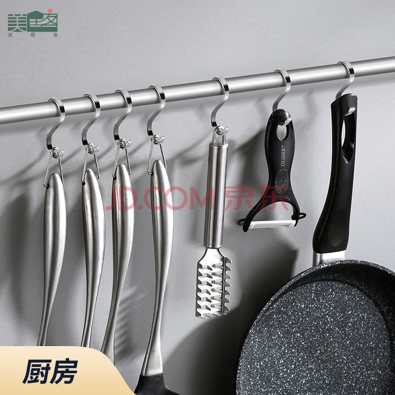 商品相册:美居客 厨房挂钩免打孔不锈钢S型挂钩强力无痕浴室门后挂钩9cm5只(扁钢)第