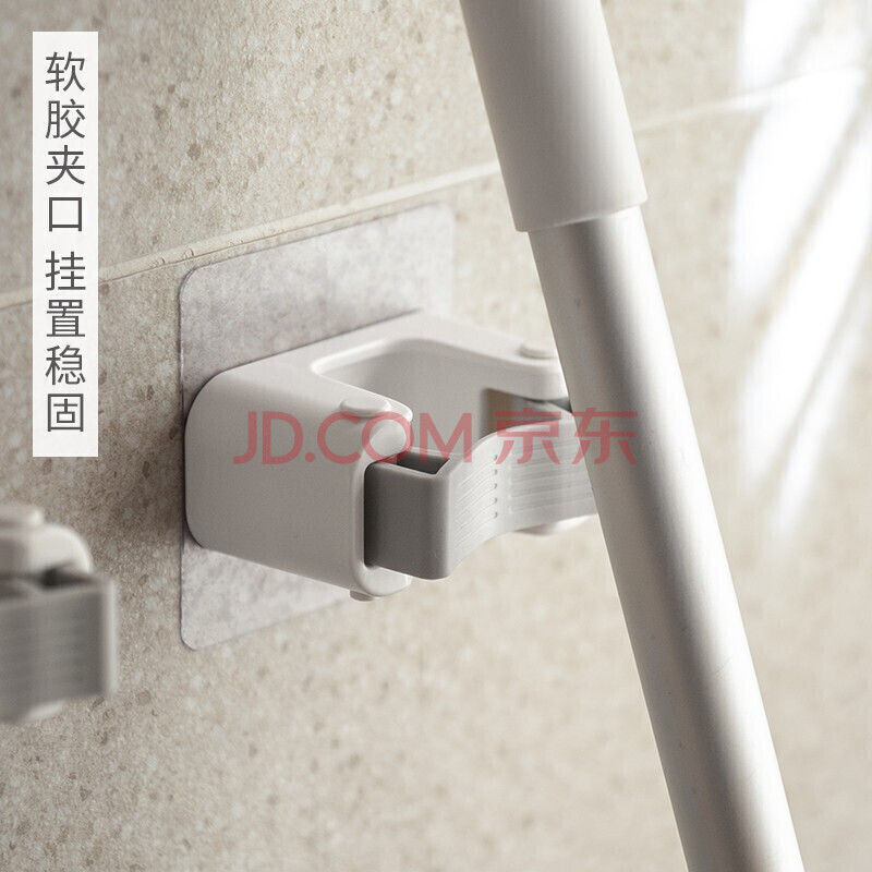 商品相册:懒角落软胶拖把挂钩免打孔卫生间壁挂拖把夹家用清洁工具收纳夹 双夹口第