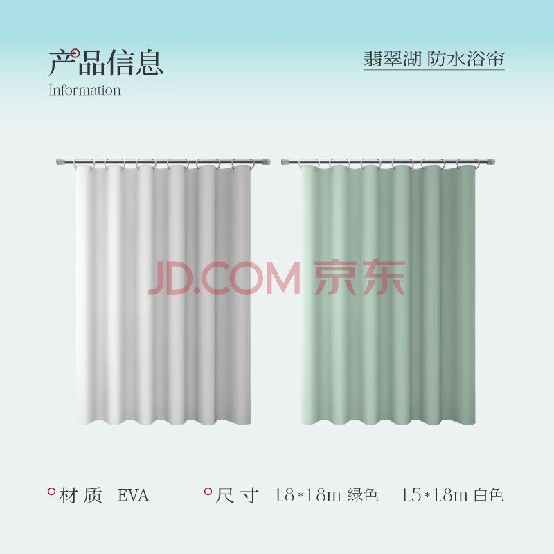 商品相册:foojo浴帘防霉加厚防透卫生间隔断帘防水布干湿分离高档150*180cm白第