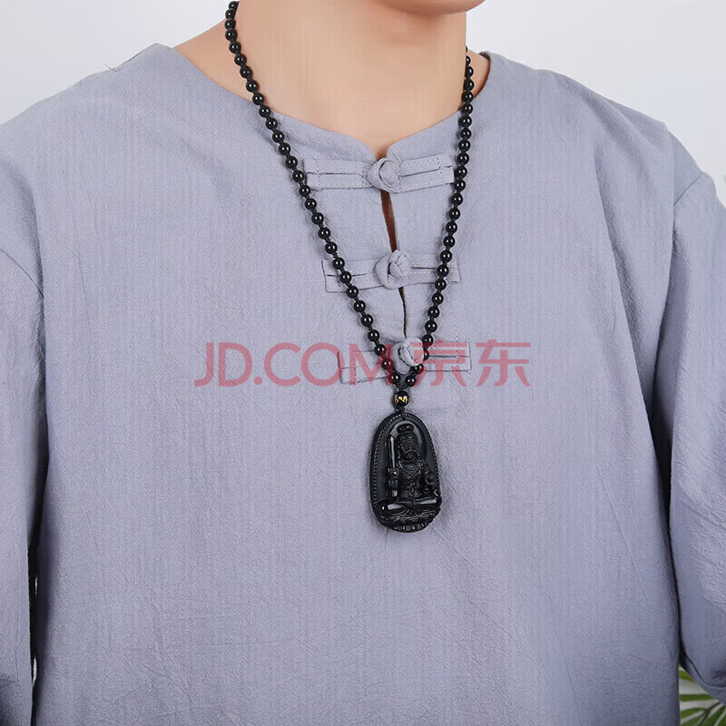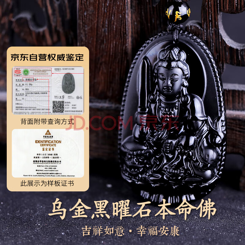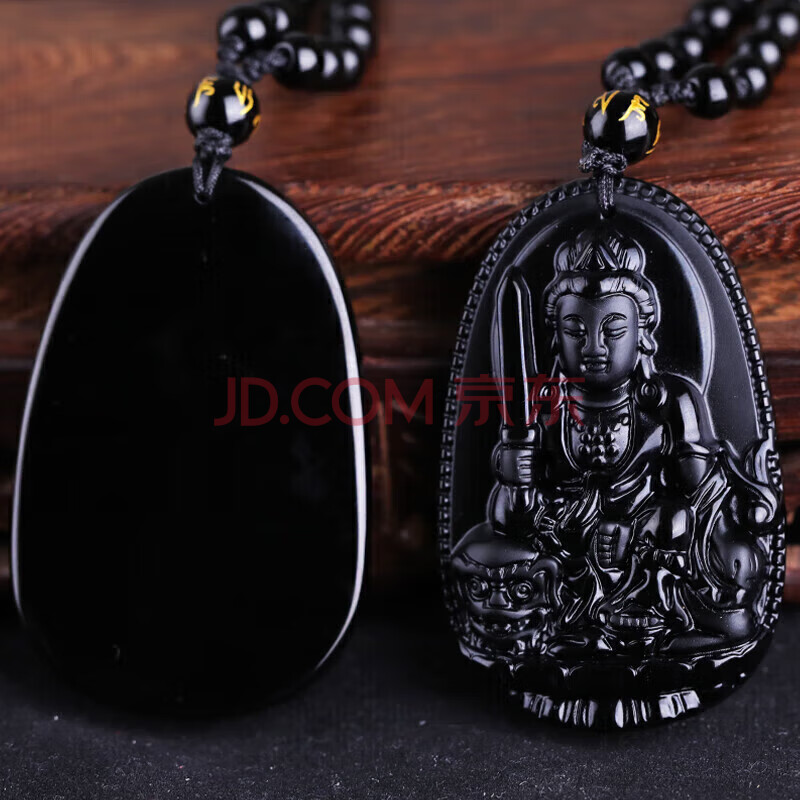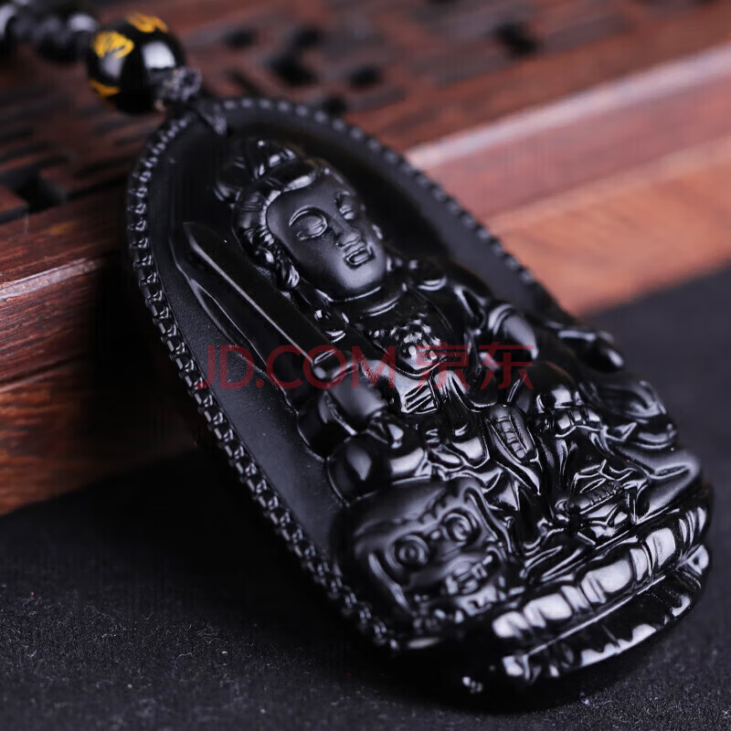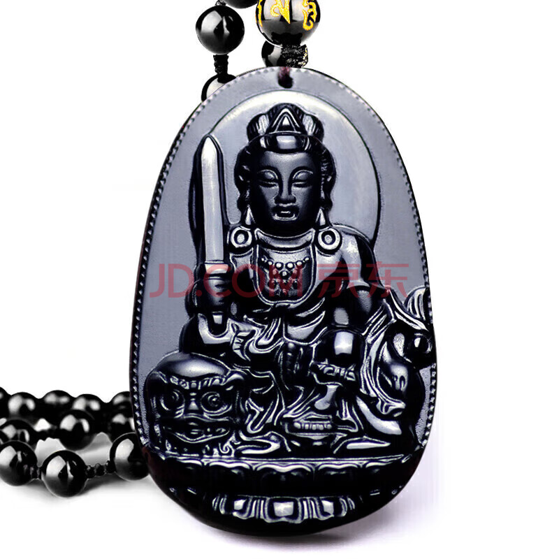 商品相册:石玥珠宝乌金天然黑曜石本命佛吊坠属兔文殊菩萨平安护身符挂件男女士款第1张/共7