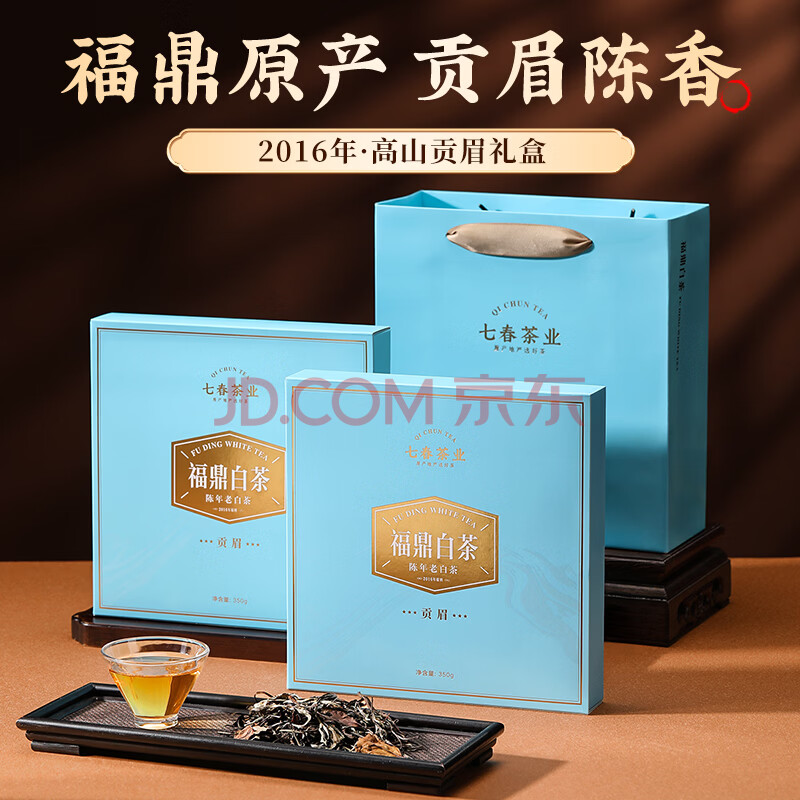 商品相册:七春福鼎老白茶2饼共700g茶叶礼盒16年贡眉可泡陈皮拼寿眉老丈人礼物第