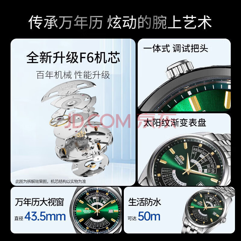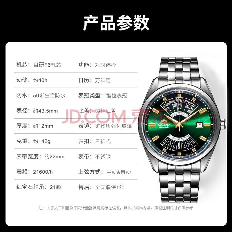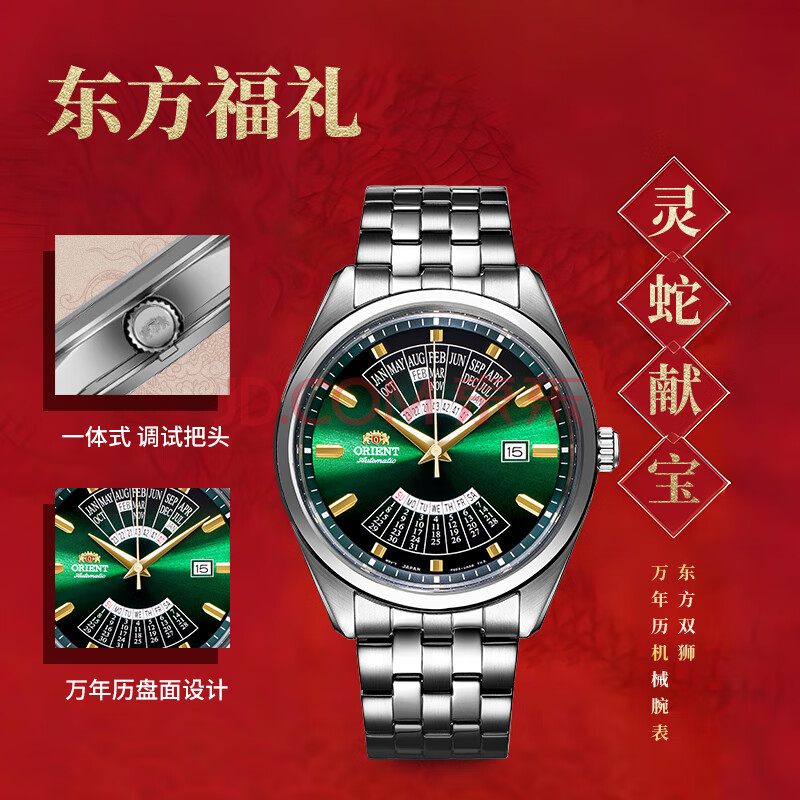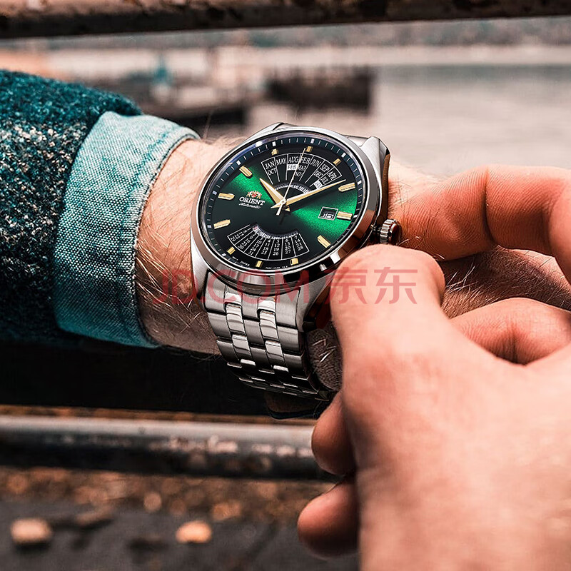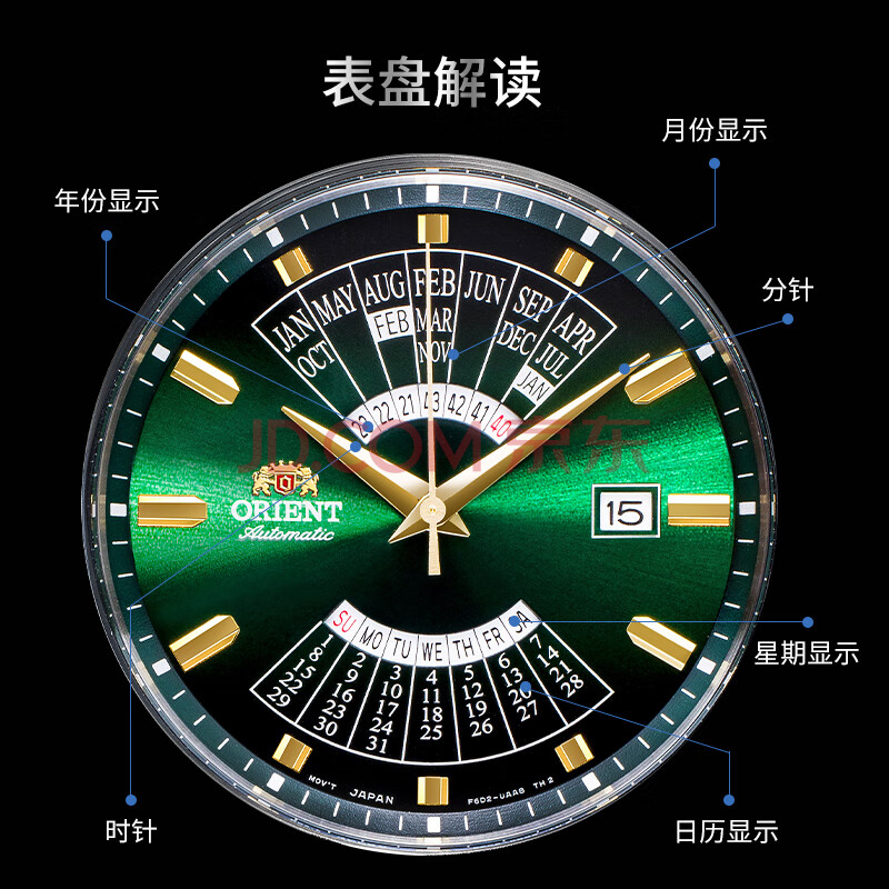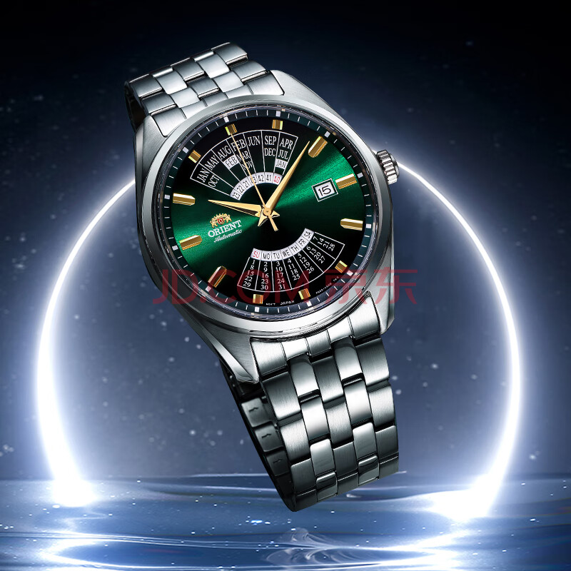 商品相册:ORIENT双狮手表原装进口全自动机械表万年历大表盘钢带男表日韩表BA0002第