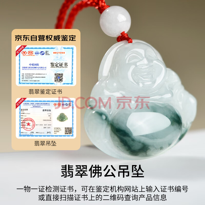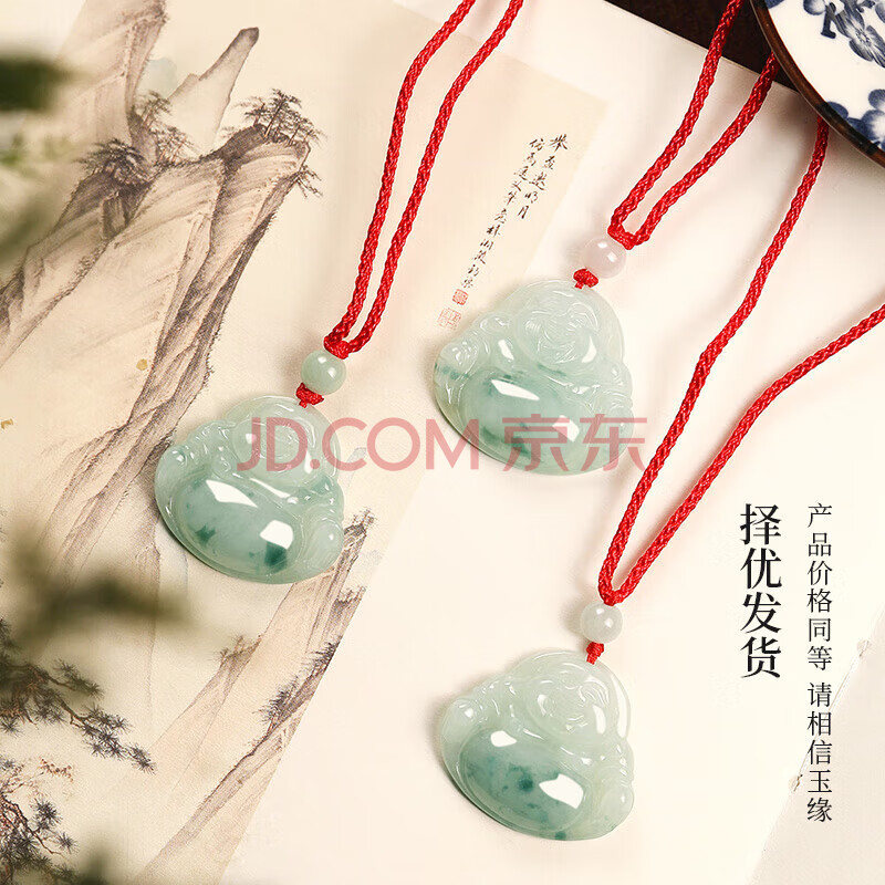 商品相册:凤禧珠宝翡翠玉佛吊坠玉坠女士款弥勒佛公红绳天然玉佩项链生日礼物第
