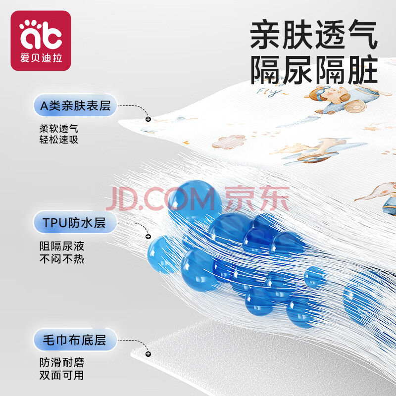 商品相册:爱贝迪拉(AIBEDILA)婴儿隔尿垫可水洗防水纯棉透气宝宝新生儿超大号姨妈垫80*100第
