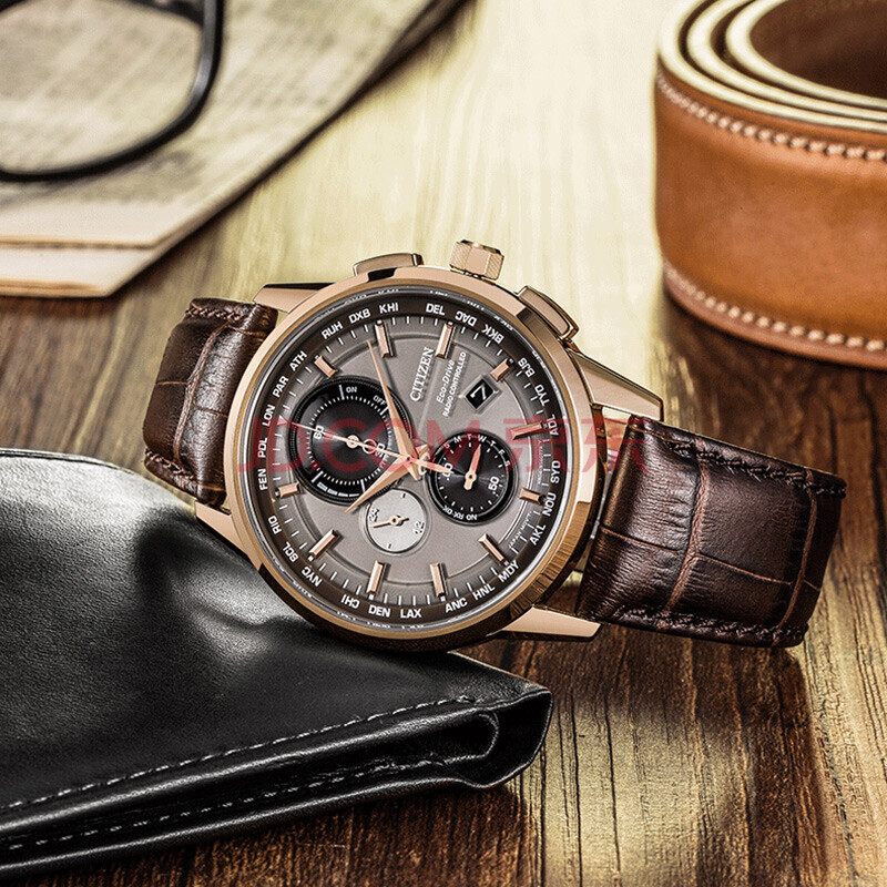 商品相册:西铁城(CITIZEN)手表男日韩表光动能电波三眼日显皮带商务送男友礼物AT8113-12H第