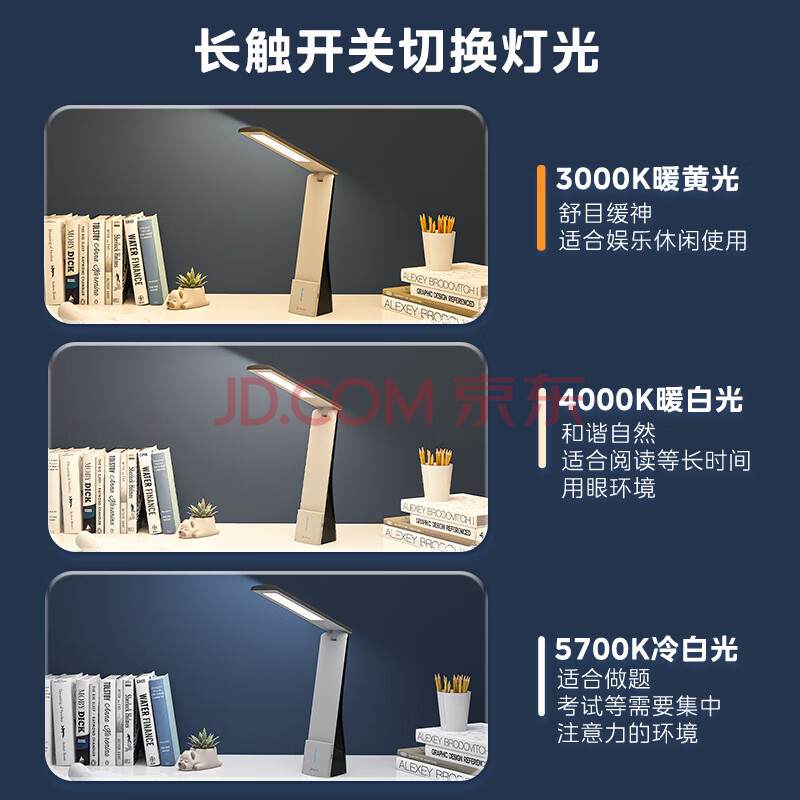 商品相册:美的(Midea)LED折叠充电台灯书桌学习阅读灯充插两用家用移动台灯第