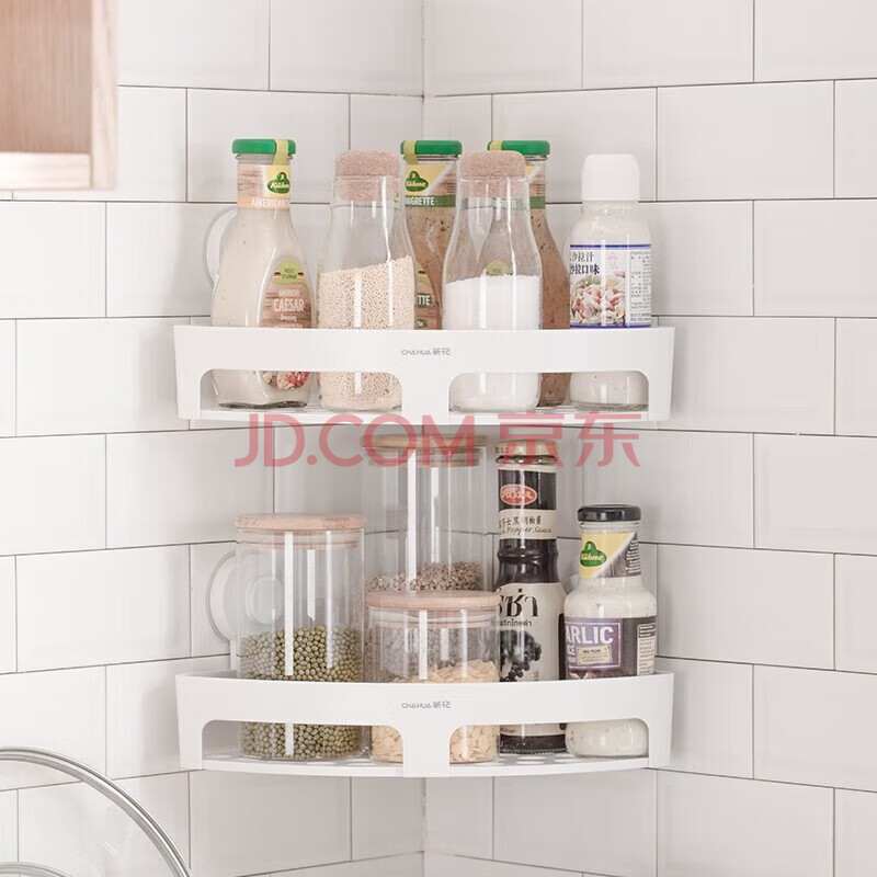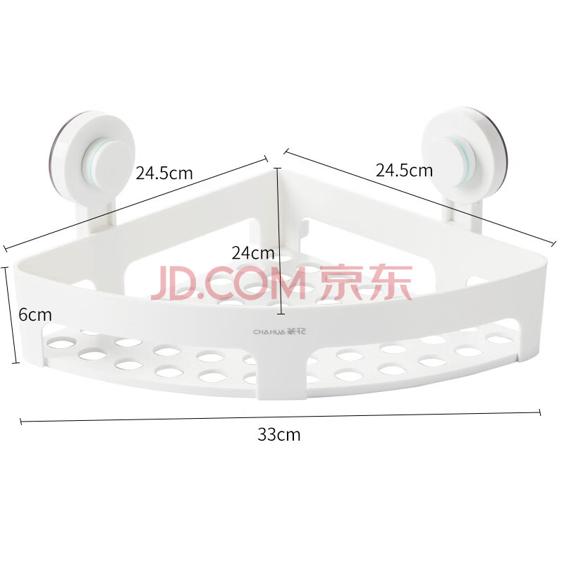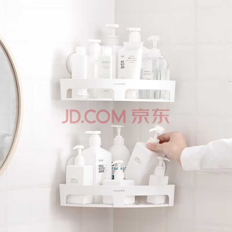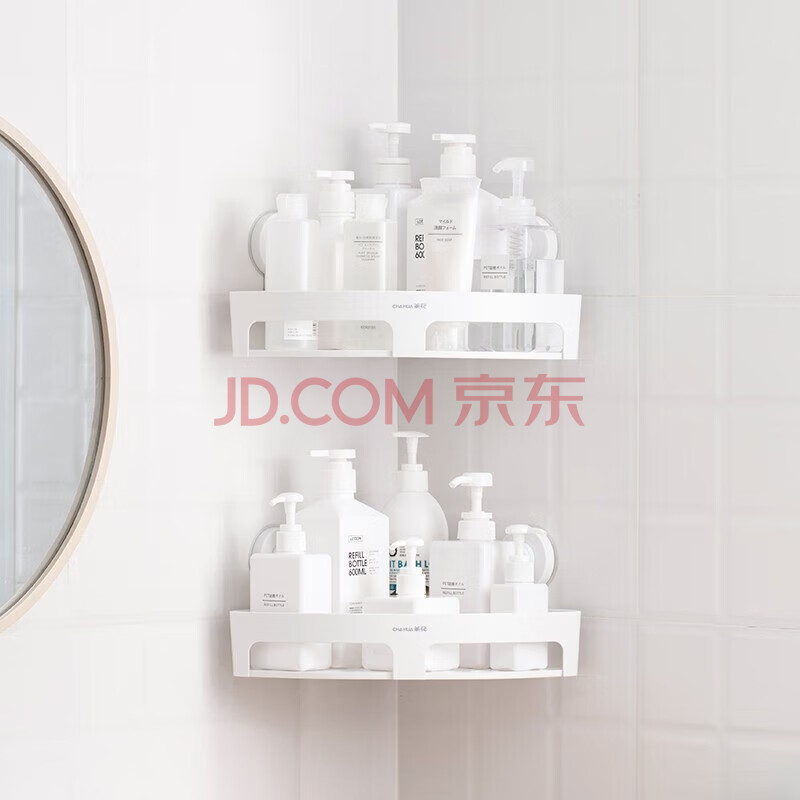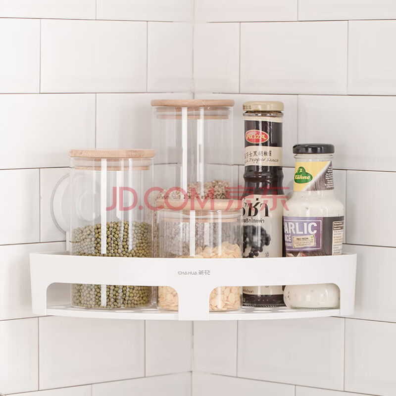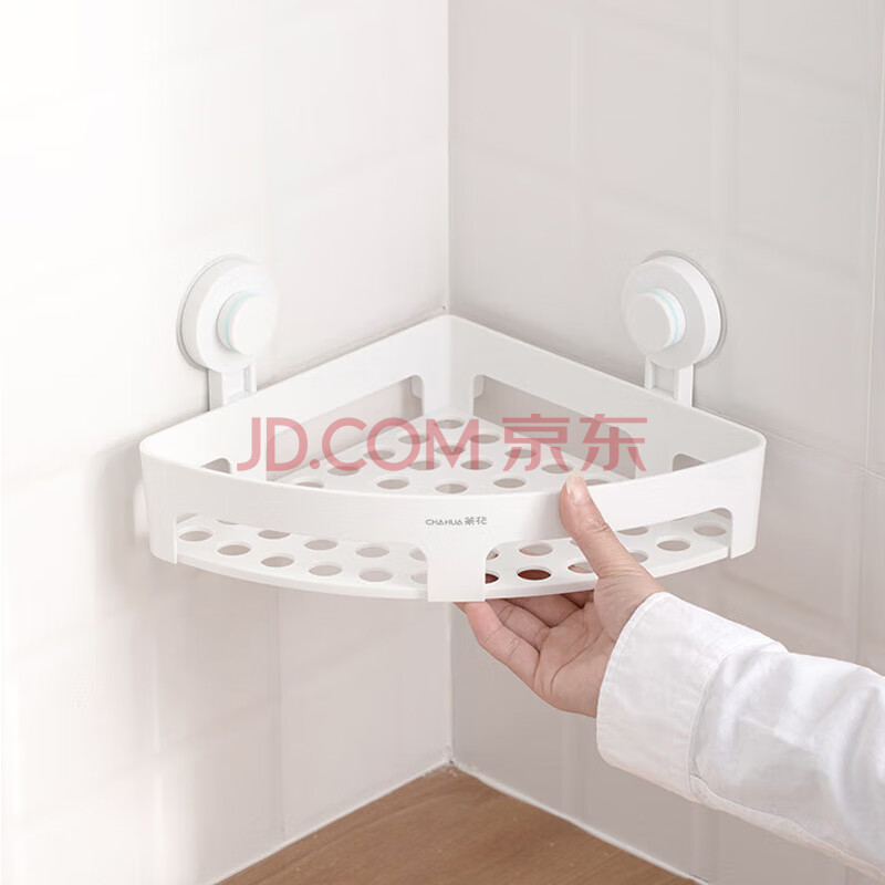 商品相册:茶花卫生间置物架 浴室免打孔洗漱牙杯架 壁挂收纳架三角 白色 1只装第