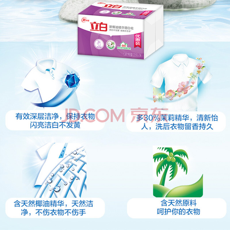 商品相册:立白椰油精华增白洗衣皂(226g*2块)肥皂 亮白 耐用不伤手第