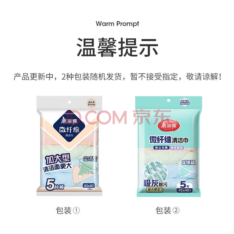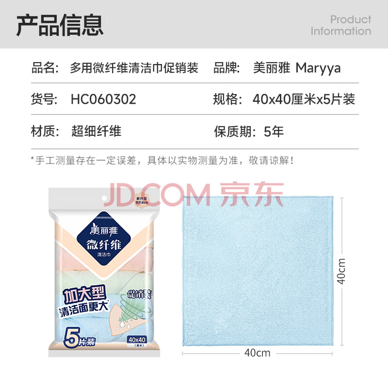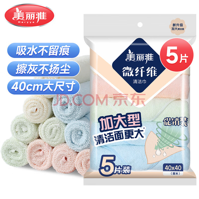 商品相册:美丽雅厨房抹布40*40cm5片家用清洁擦灰布加大加厚擦玻璃镜面不易留痕第