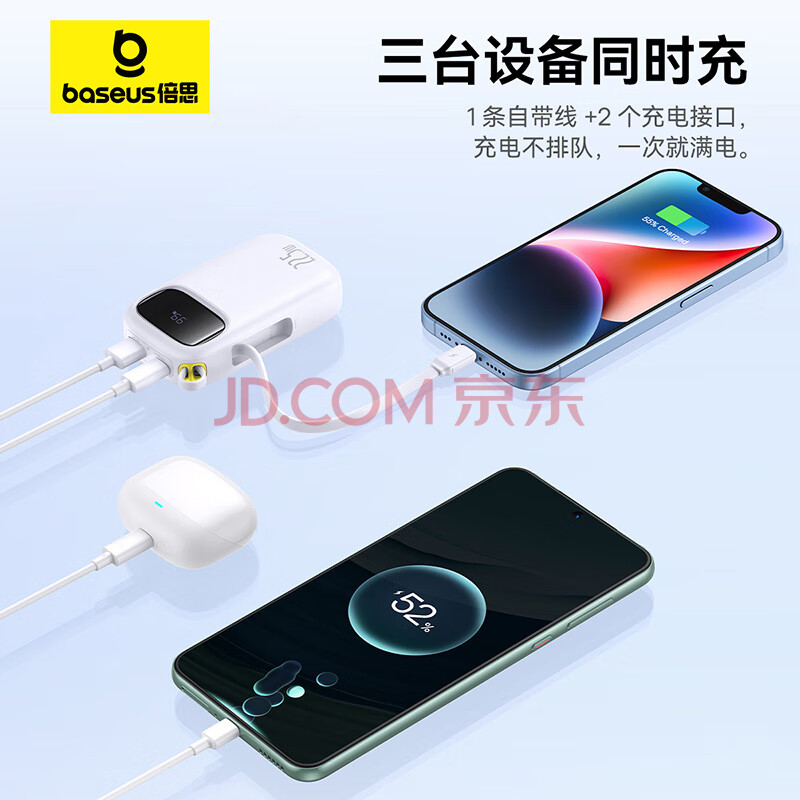 商品相册:倍思【国标3C认证可上飞机】充电宝10000毫安22.5W自带Type-C线移动电源适用于苹果华为小米手机第