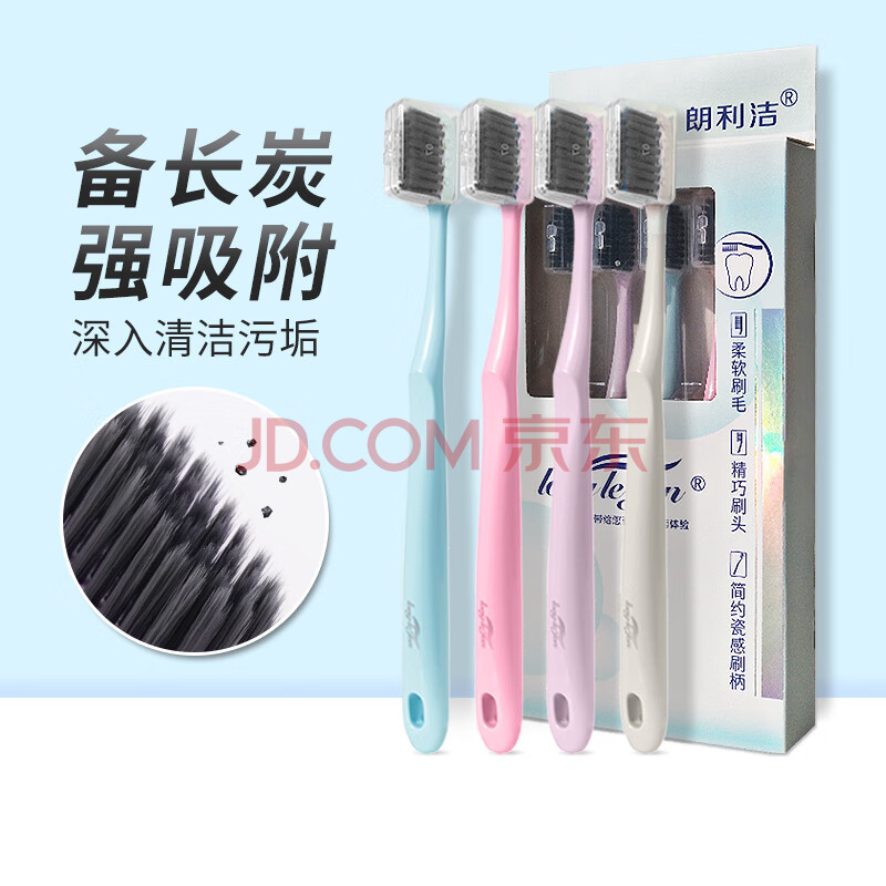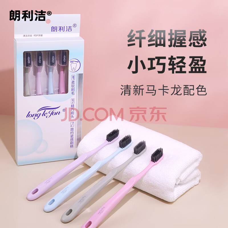 商品相册:朗利洁彩盒旅行成人软毛牙刷独立刷帽深入清洁口腔呵护干净便携4支装第