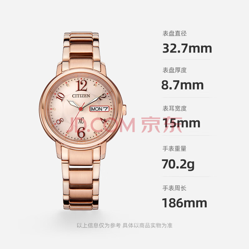 商品相册:西铁城(CITIZEN)手表女日韩表xC系列光动能日显盘钢带时尚送女友礼物EW2423-52W第