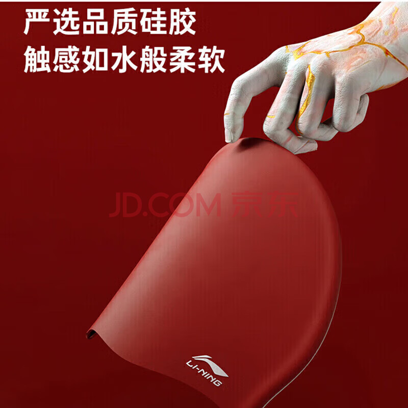 商品相册:李宁 LI-NING泳帽防水硅胶男女不勒头舒适游泳长发护发泳帽LSMR808-1第