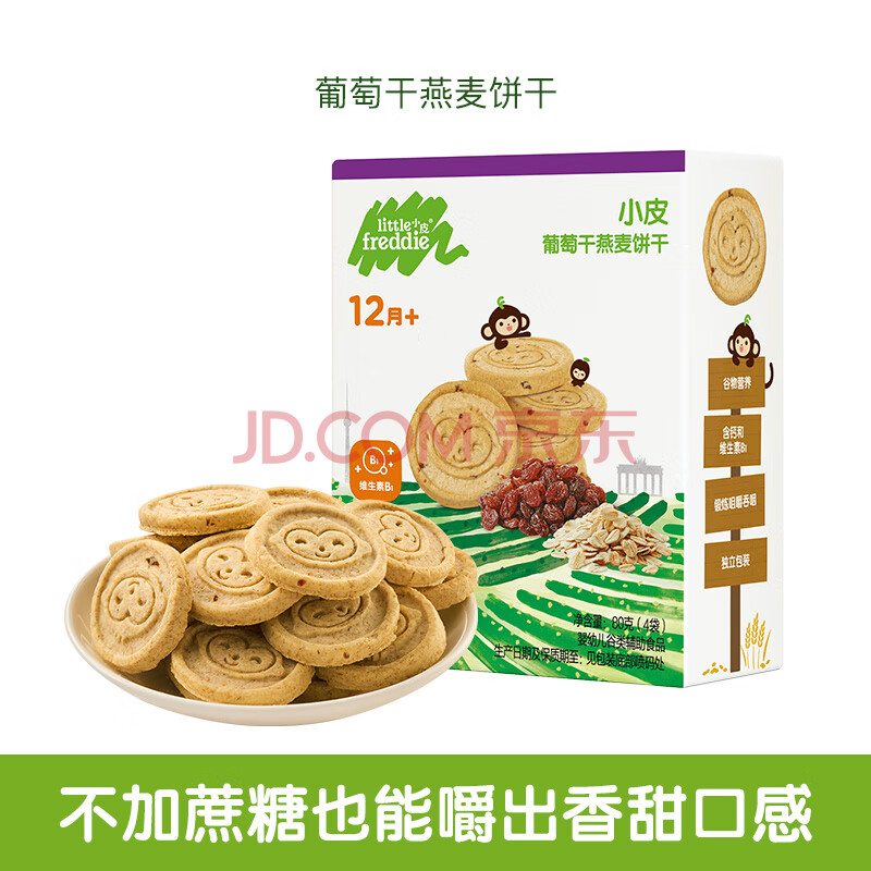 商品相册:小皮(Little Freddie)全谷物燕麦葡萄干饼干宝宝婴儿零食磨牙饼干儿童零食80g 1岁+第
