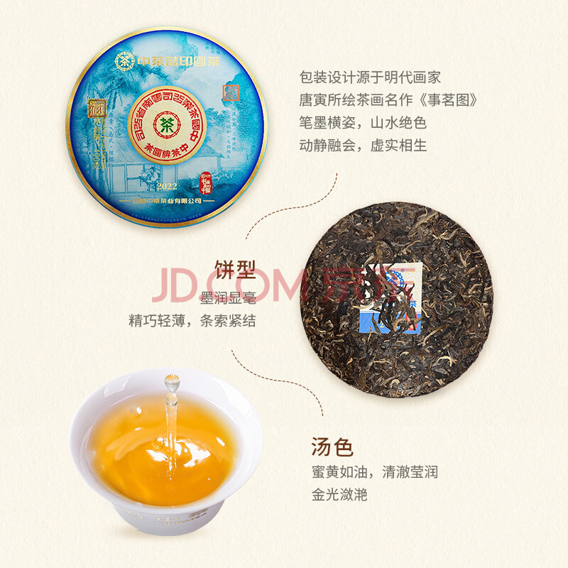 商品相册:中茶普洱茶蓝印圆茶普洱生茶班章易武坝糯三峰饼茶400g*7饼整提第