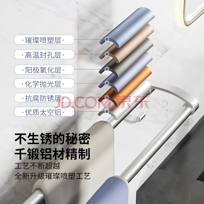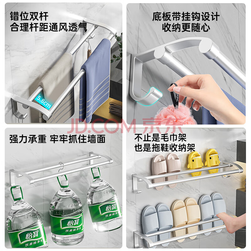 商品相册:百字毛巾架免打孔毛巾杆加厚太空铝浴巾架卫生间浴室置物架第
