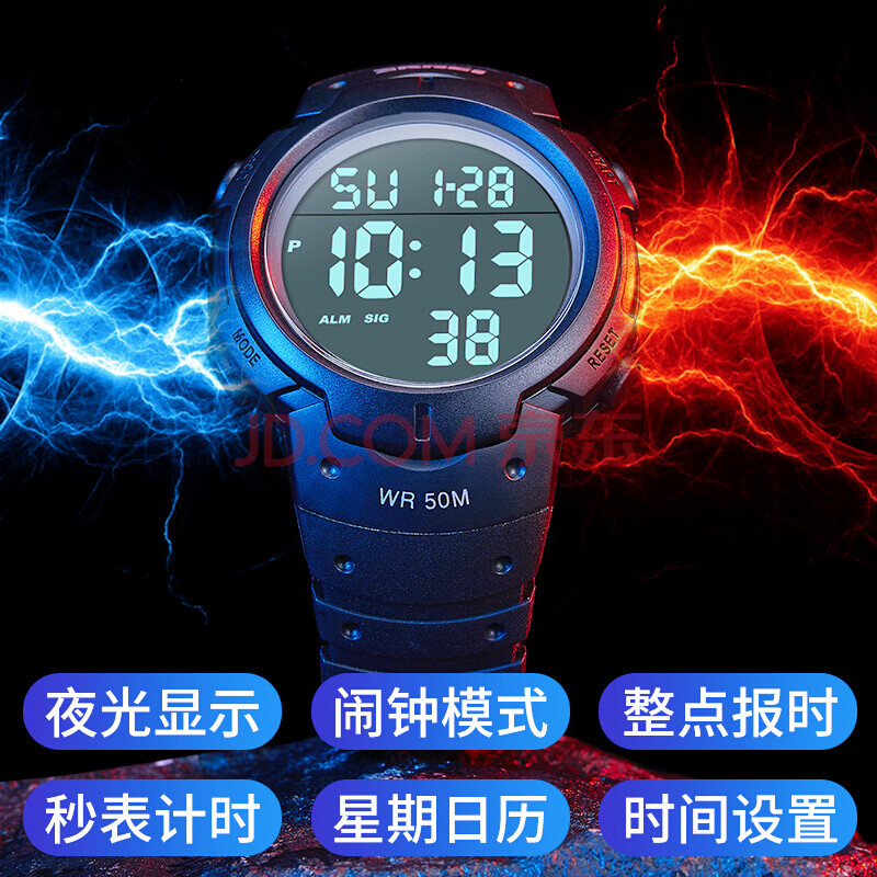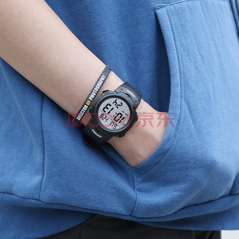 商品相册:时刻美(skmei)学生手表初高中生青少年儿童防水6-12岁只看时间电子表男1068黑第