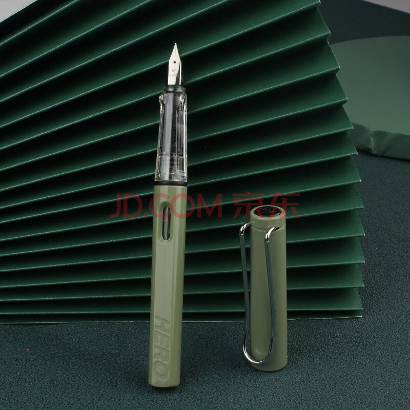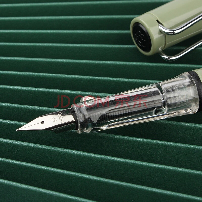 商品相册:英雄(HERO)钢笔359正姿EF尖薄厚片工艺学生练字钢笔(附加6支墨囊颜色随机)铱金钢笔签字笔莫兰迪色系绿色第