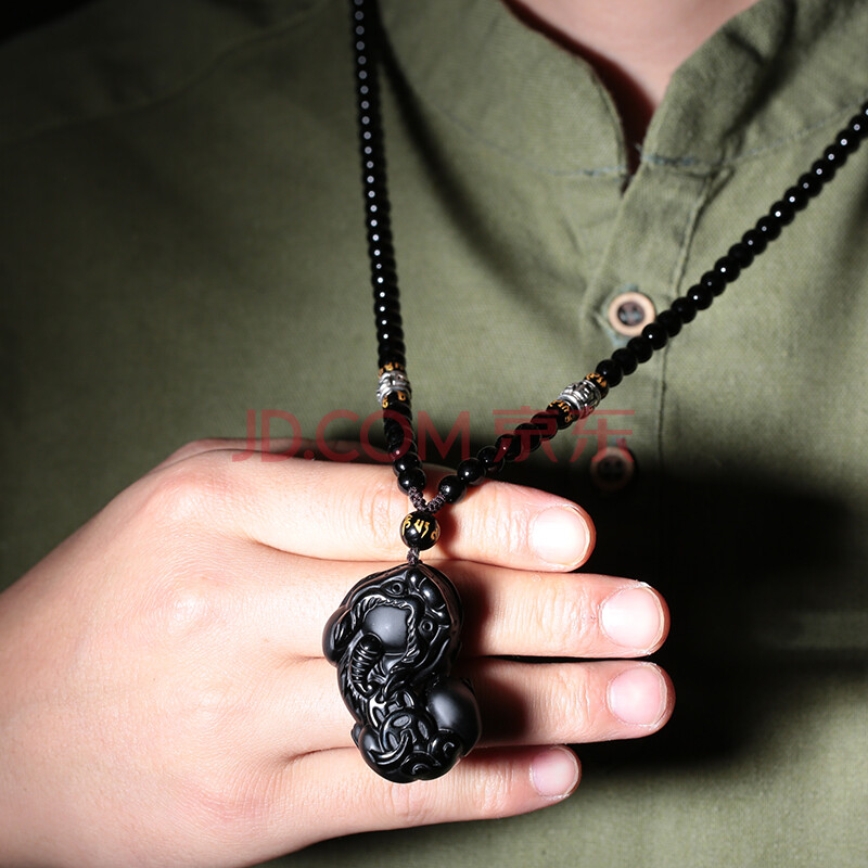 商品相册:慈灵阁黑曜石吊坠黑耀石貔貅霸王皮丘饰品挂件项链护身符礼物男士男生第