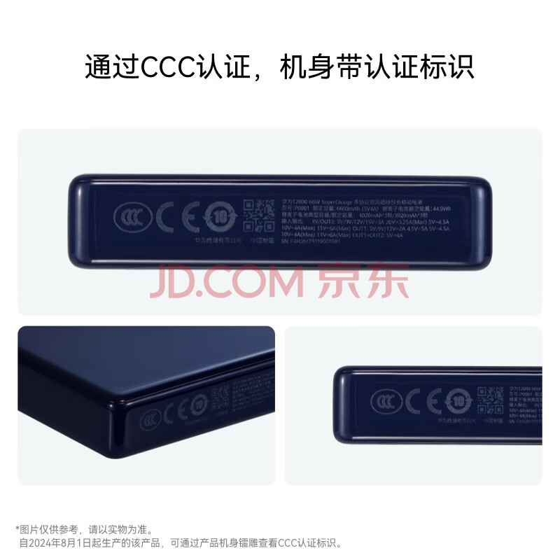 商品相册:华为【3C认证】上飞机12000mAh66W多协议快充移动电源充电宝手机蓝户外储能电源第