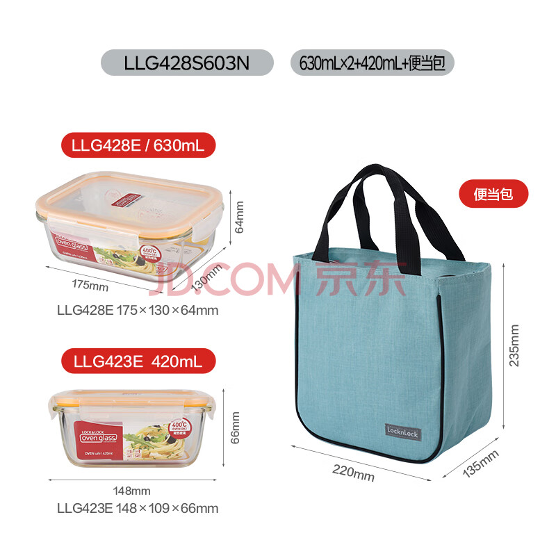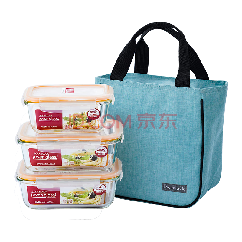 商品相册:乐扣乐扣(LOCK&LOCK)耐热玻璃保鲜盒微波炉饭盒上班学生便当盒水果餐盒配便当包三件套第