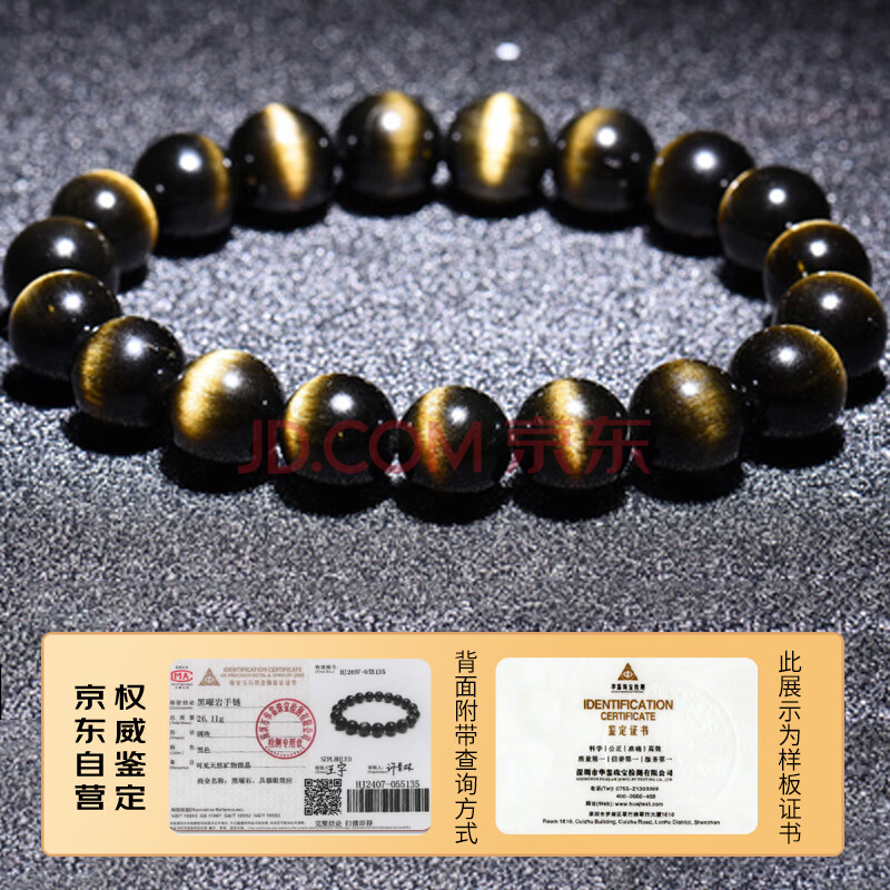 商品相册:石玥珠宝收藏级金猫眼天然黑曜石手串本命年转运水晶手链男女士款礼物10mm第