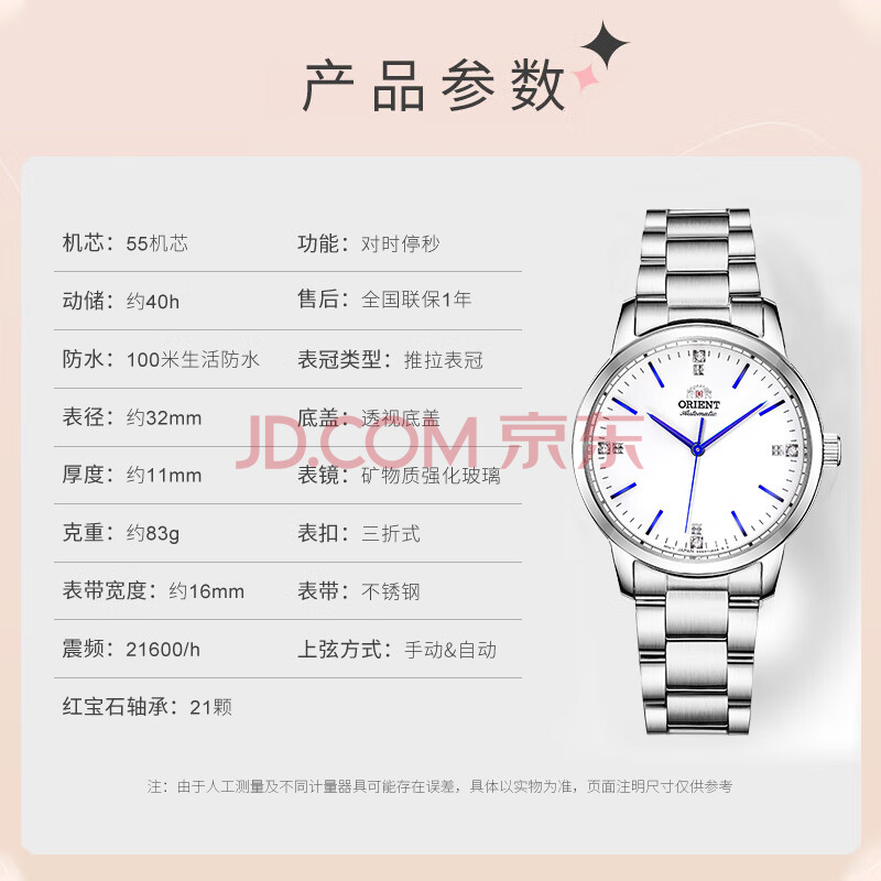 商品相册:ORIENT东方双狮手表女士时尚镶钻小表盘防水女表生日礼物送女友 NB0102第
