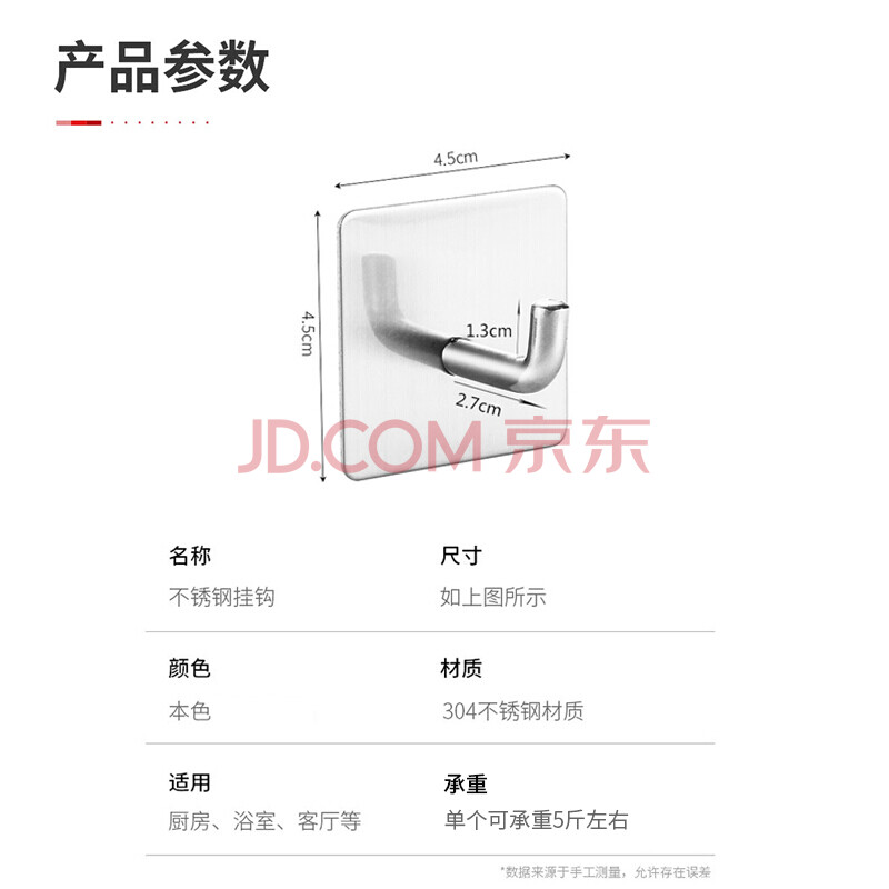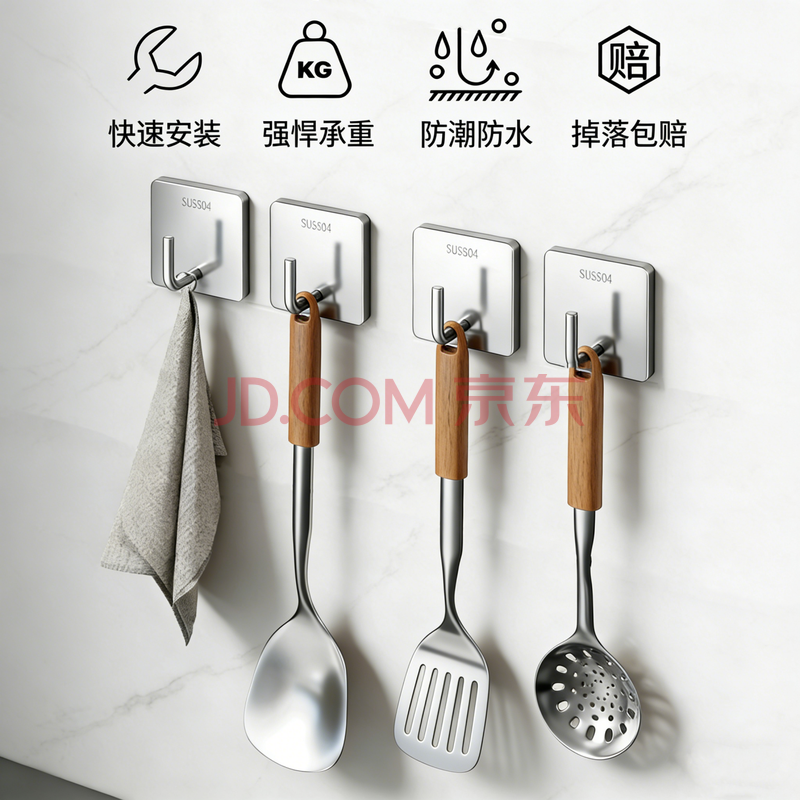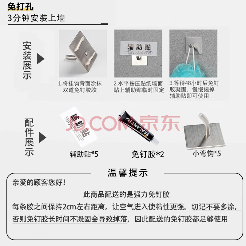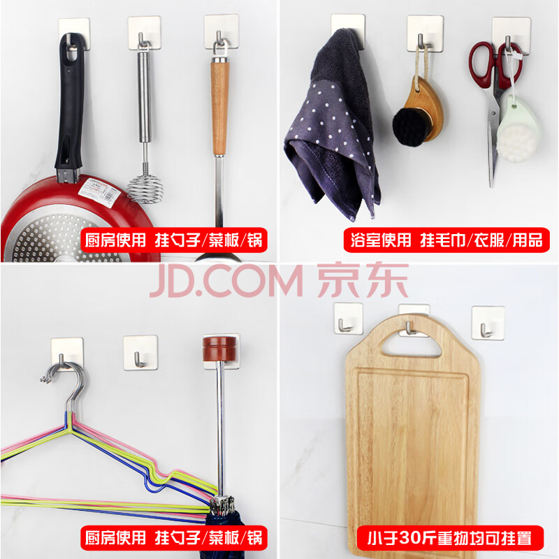 商品相册:馨沛304不锈钢挂钩免打孔浴室毛巾架强力粘钩墙壁卫生间厕所置物架第