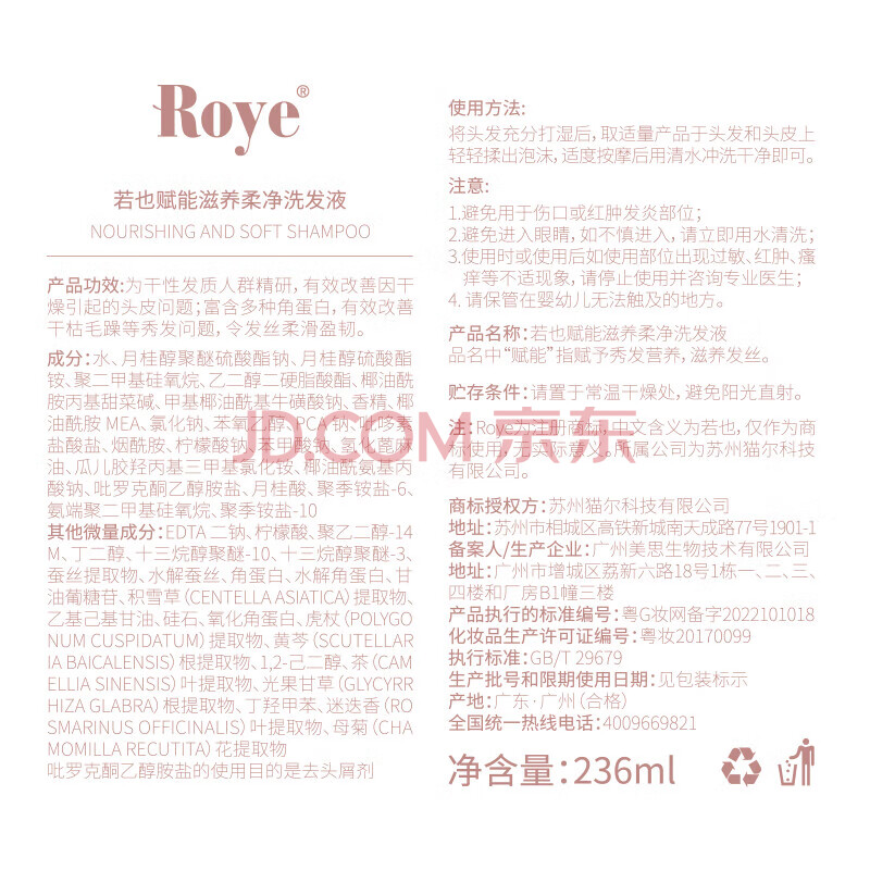 商品相册:roye若也【龚俊同款】角蛋白洗发水柔顺发丝亮泽锁水改善毛躁236ml第