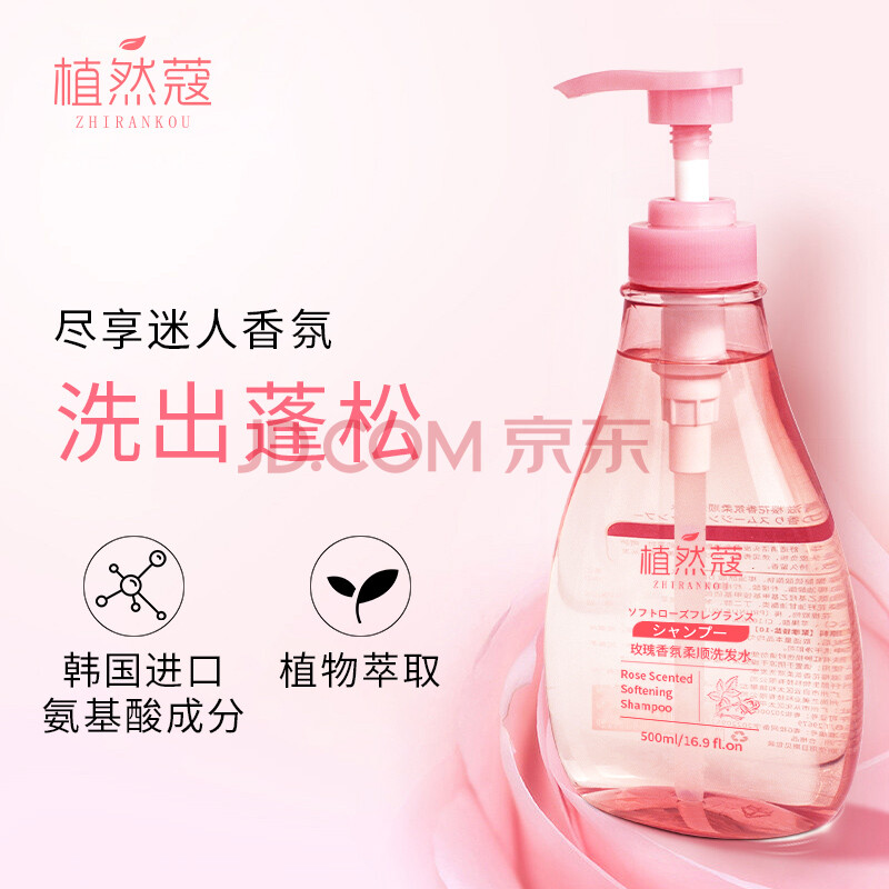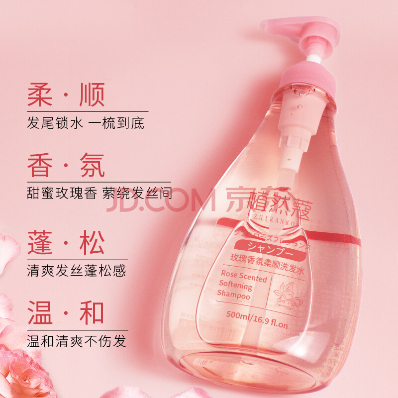 商品相册:植然蔻(ZHIRANKOU)玫瑰香氛柔顺洗发水500ml 去屑止痒控油蓬松香水型持久留香洗头膏第