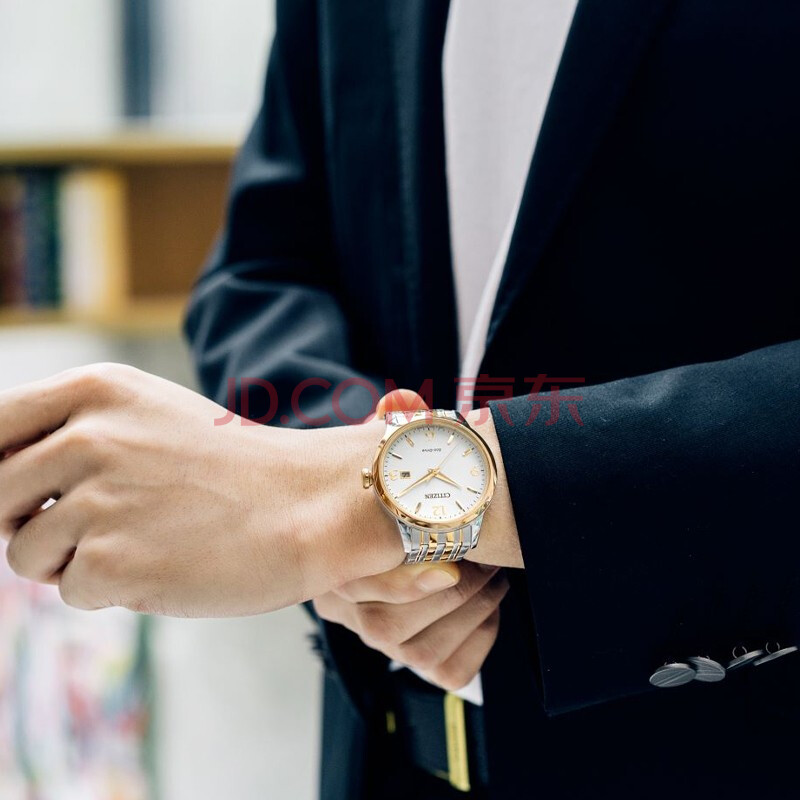 商品相册:西铁城(CITIZEN)手表男日韩表光动能白盘日显钢带商务时尚送男友礼物BM7304-59A第
