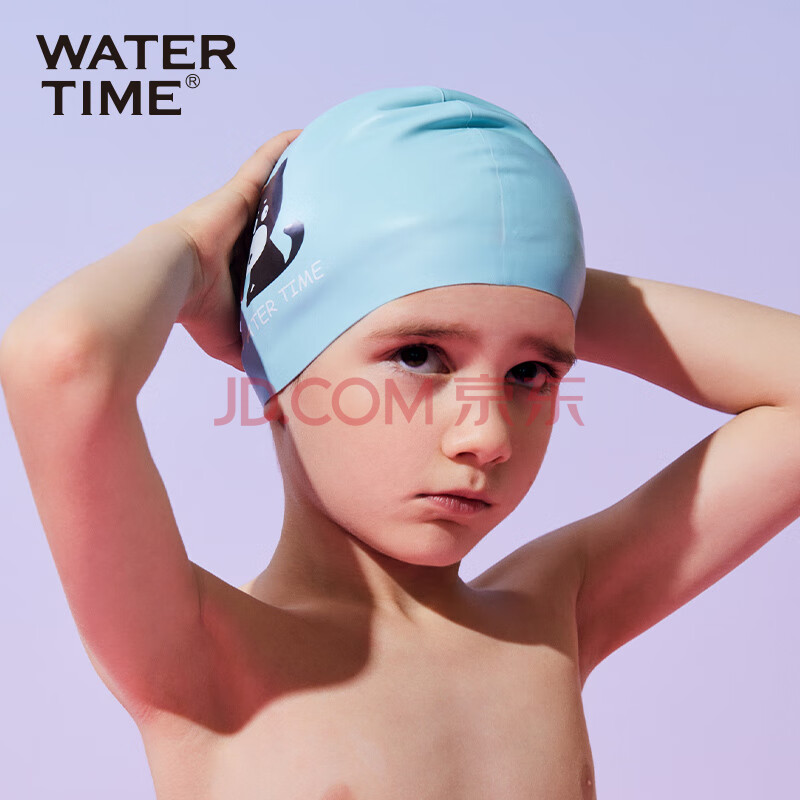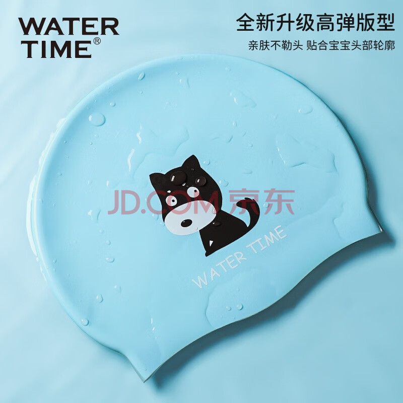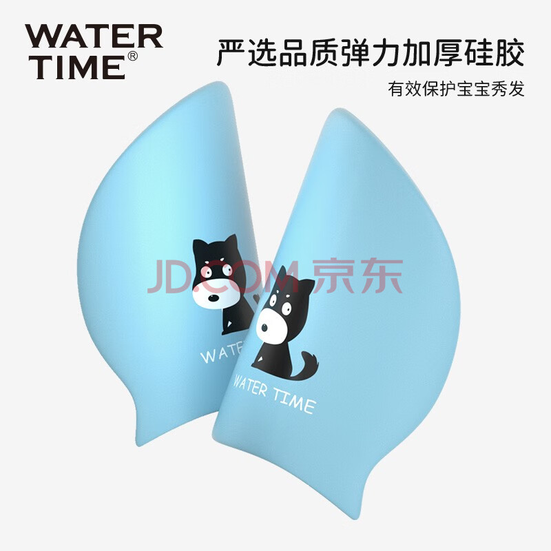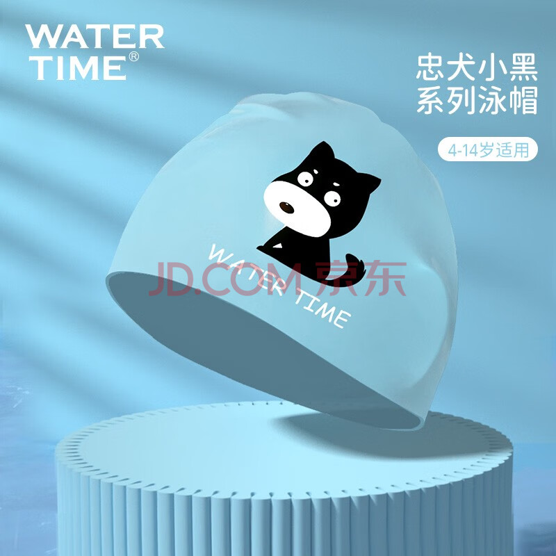 商品相册:WATERTIME/水川 儿童泳帽男童女童防水硅胶不勒头长发护耳游泳帽忠犬小黑第