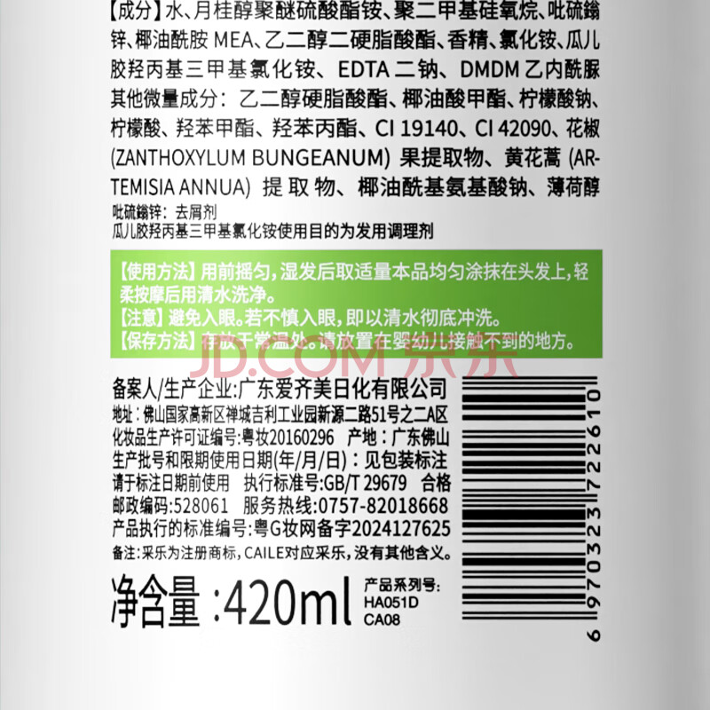 商品相册:采乐同康控油蓬松洗发水清爽去油洗发露去屑止痒卸油型洗头膏420ml第