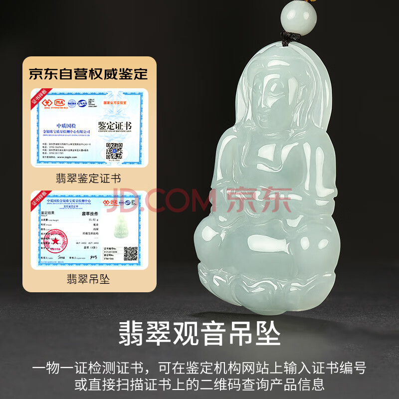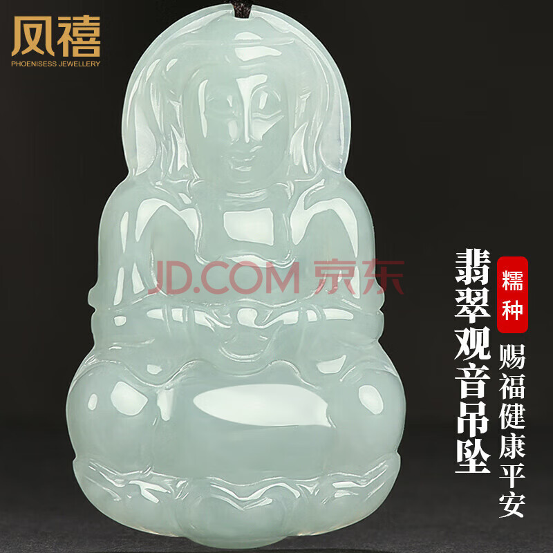 商品相册:凤禧珠宝天然翡翠观音吊坠男士糯种玉观音菩萨玉坠项链送老公生日礼物第